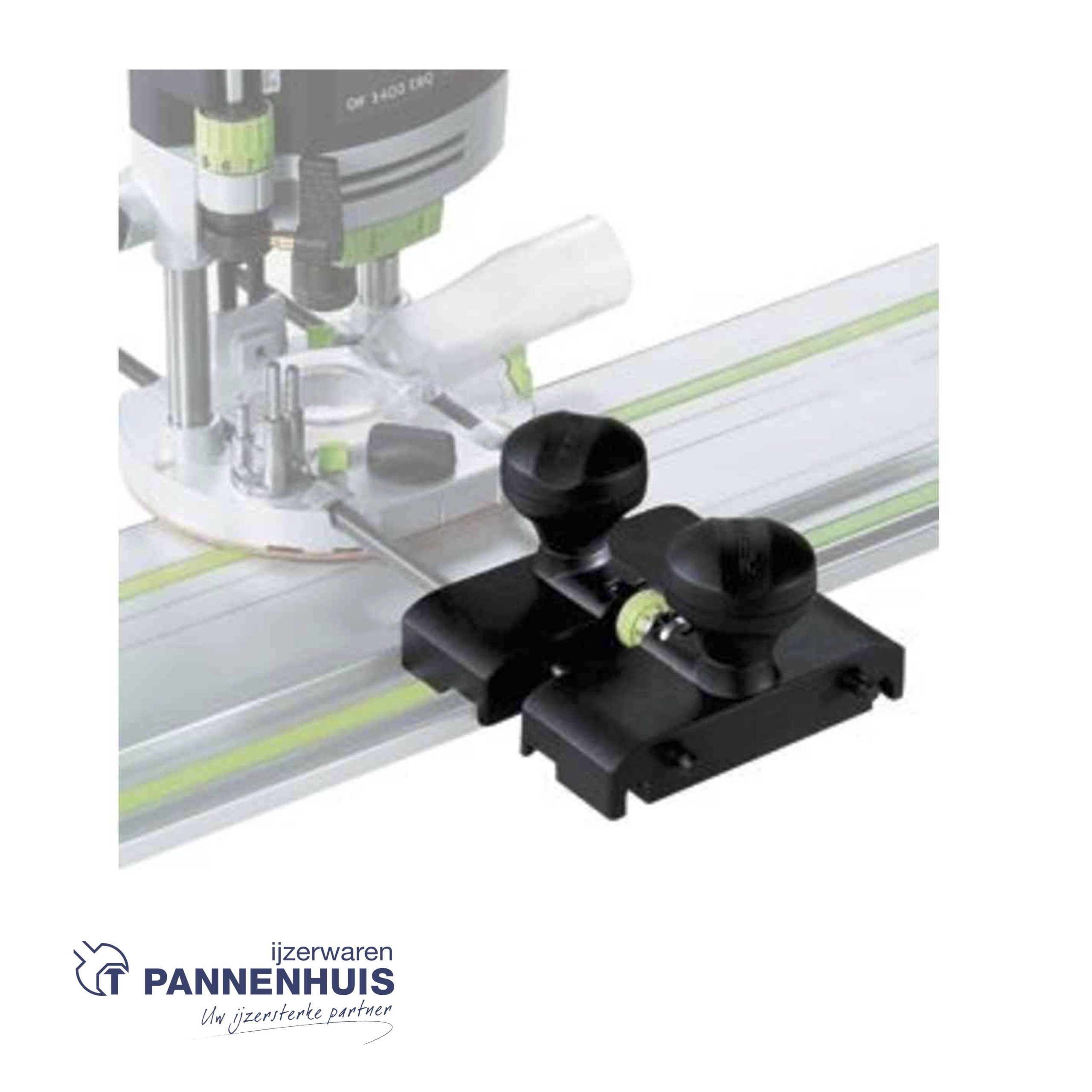 Met de geleiderailadapter kan de bovenfrees veilig en exact recht op de geleiderail geleid worden. De combinatie met de geleiderail is vooral geschikt voor het infrezen van groeven, graatlijsten, siergroeven of uitfrezingen in het oppervlak.
