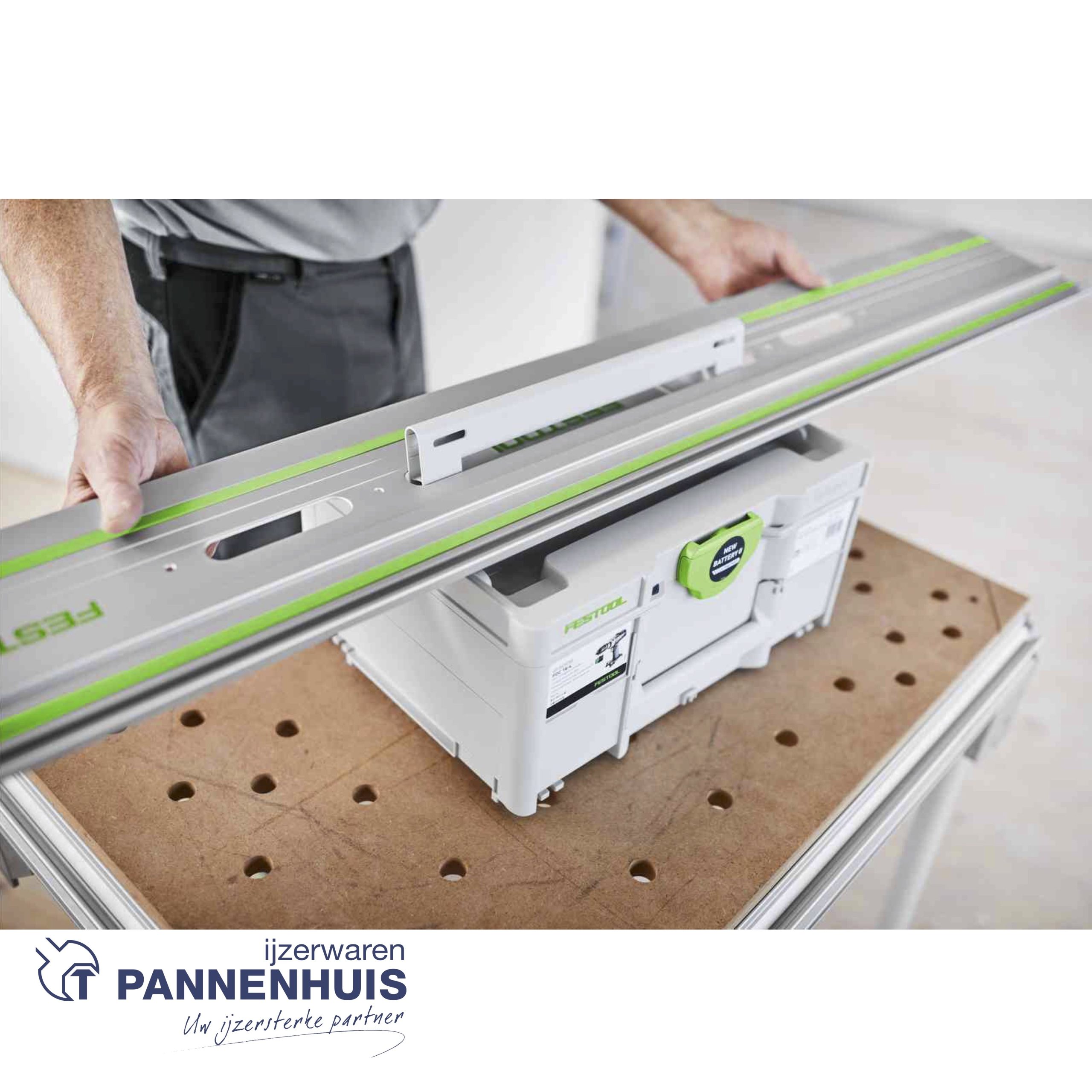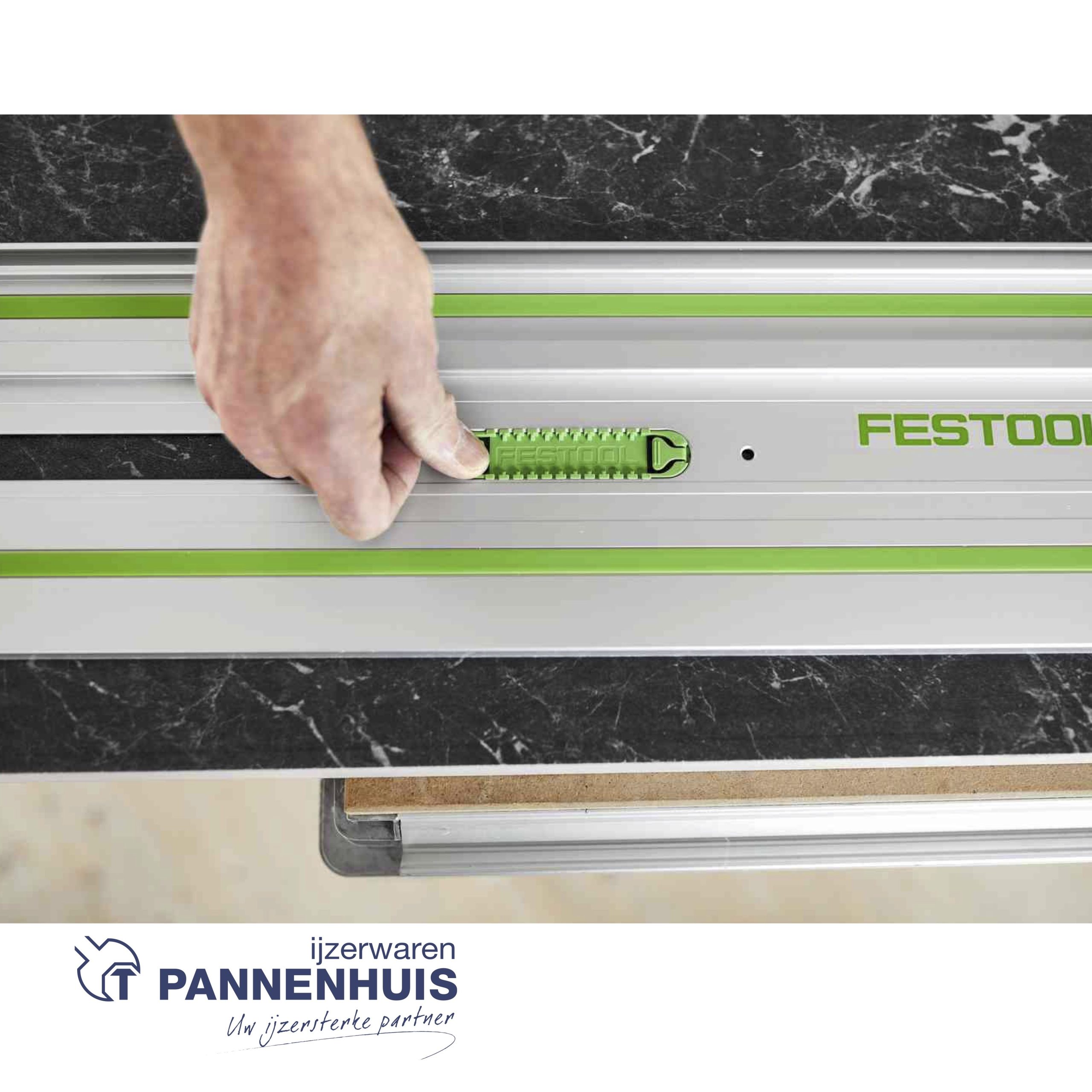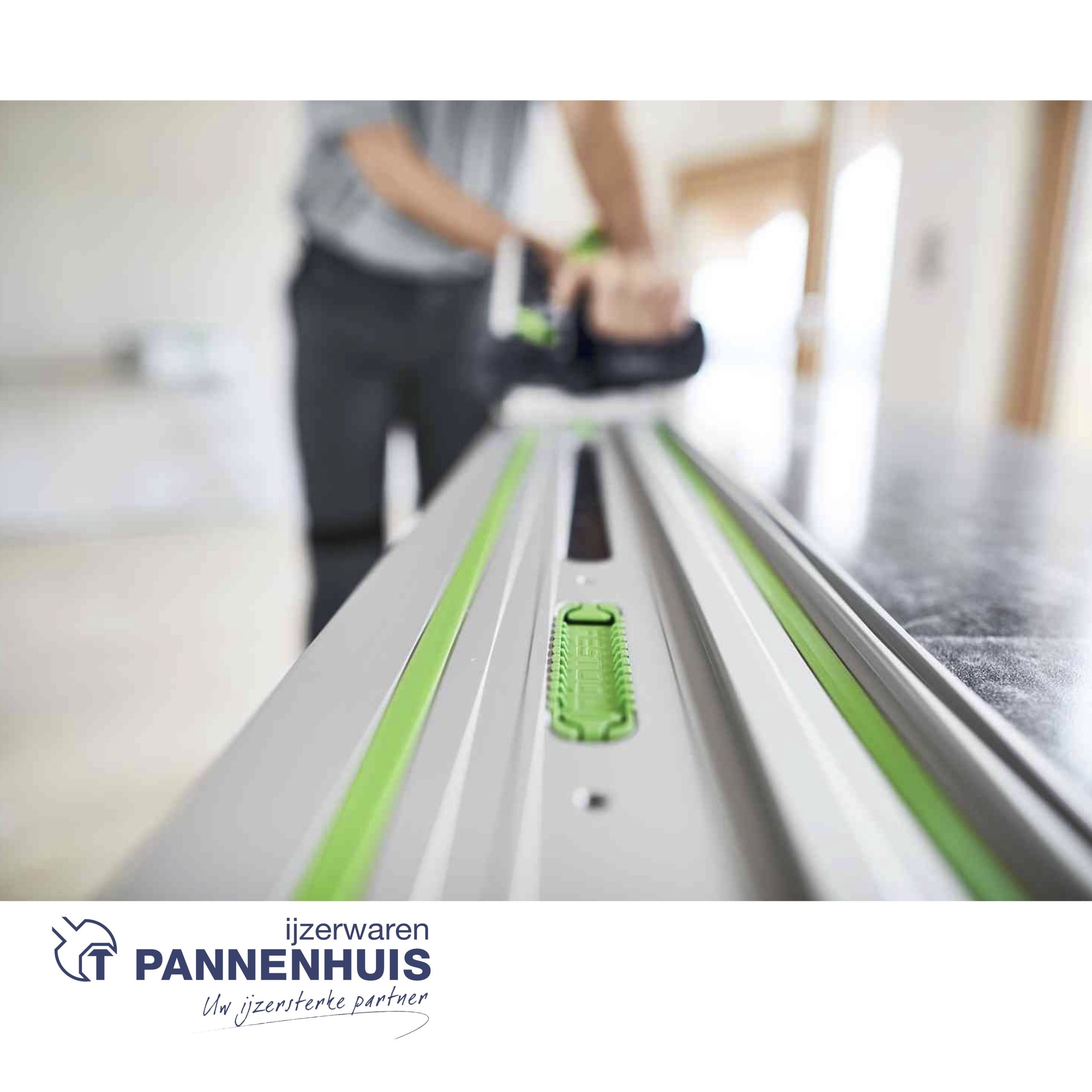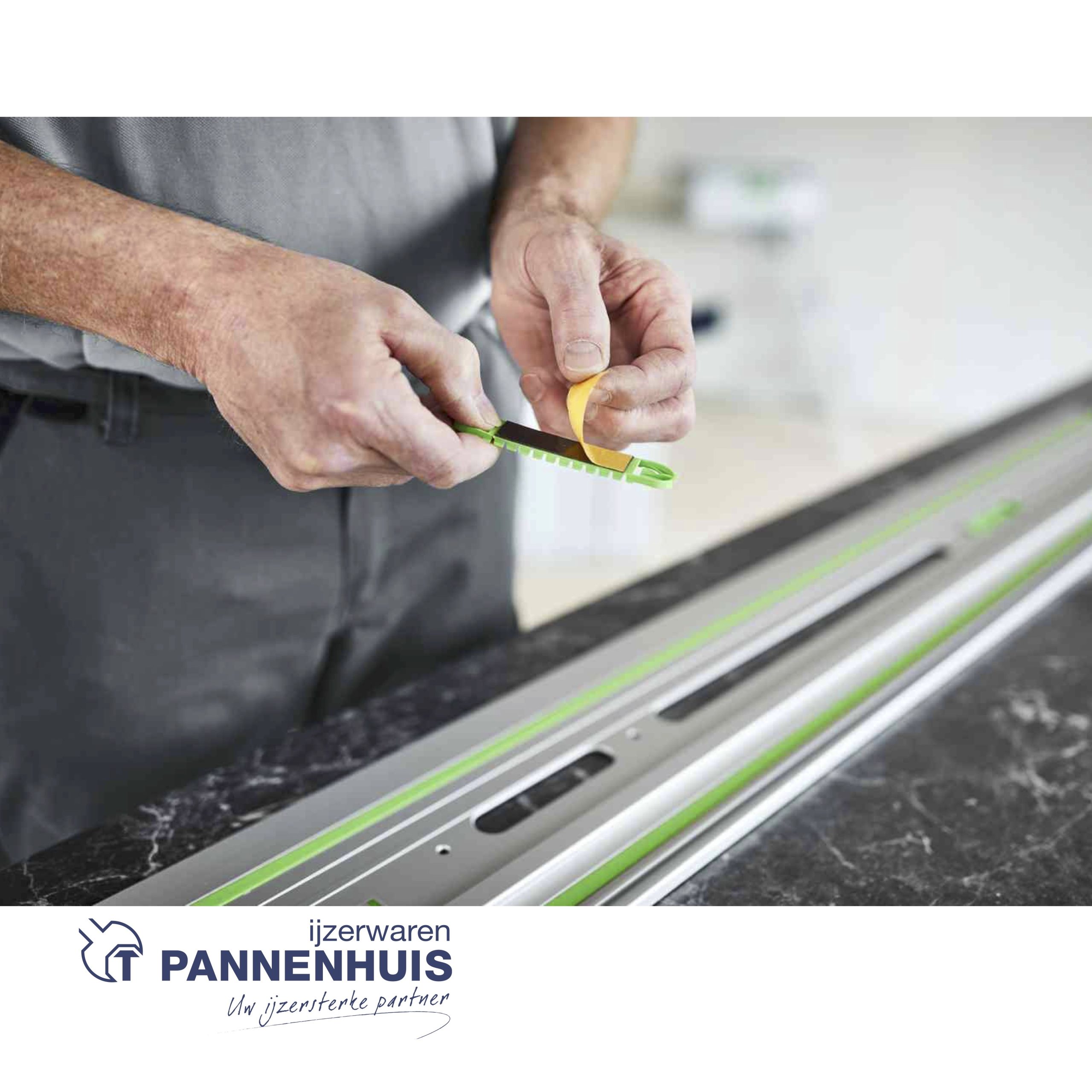 Door Festool bedacht en geperfectioneerd: de geleiderail met kleefpads. Maakt rechte en precieze zaagsnedes bij horizontaal werken op de vloer of het werkvlak alsook bij toepassingen aan de muur mogelijk. Eenvoudige bevestiging op verschillende oppervlakken met behulp van de kleefpads. Eenvoudig en praktisch transport van twee geleiderails via de draaggreep van een Systainer. De geleiderail FS/2-KP is verkrijgbaar in de lengtes 1400 en 1900 mm.