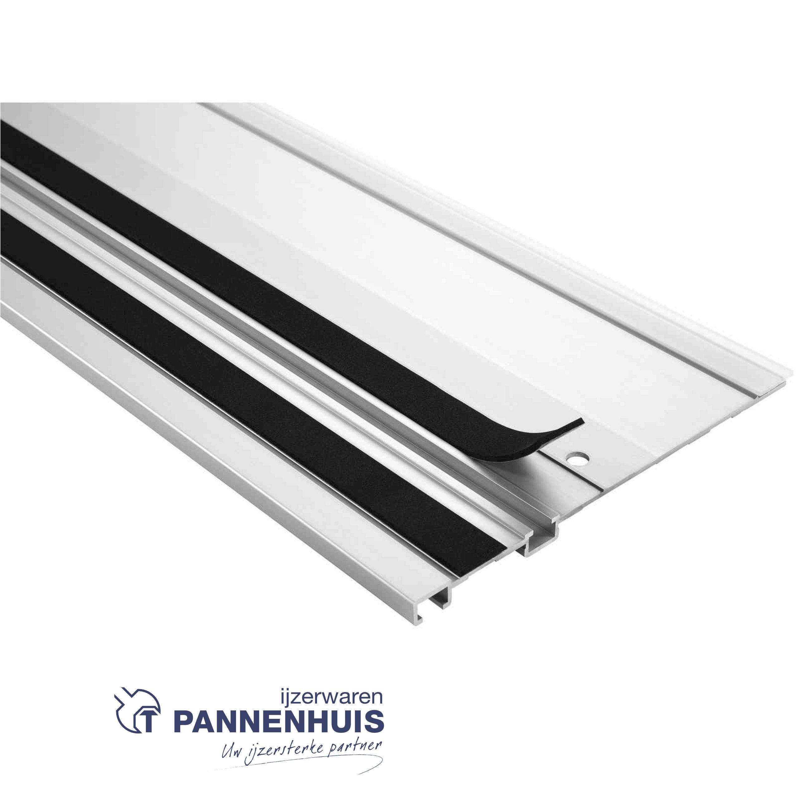 De hechtlaag helpt om het wegglijden van de geleiderail ook op gladde materialen te vermijden en beschermt tegelijk het werkstukoppervlak tegen beschadigingen. Bij slijtage of beschadiging moet hij vervangen worden om een perfecte werking van de geleiderail te garanderen.