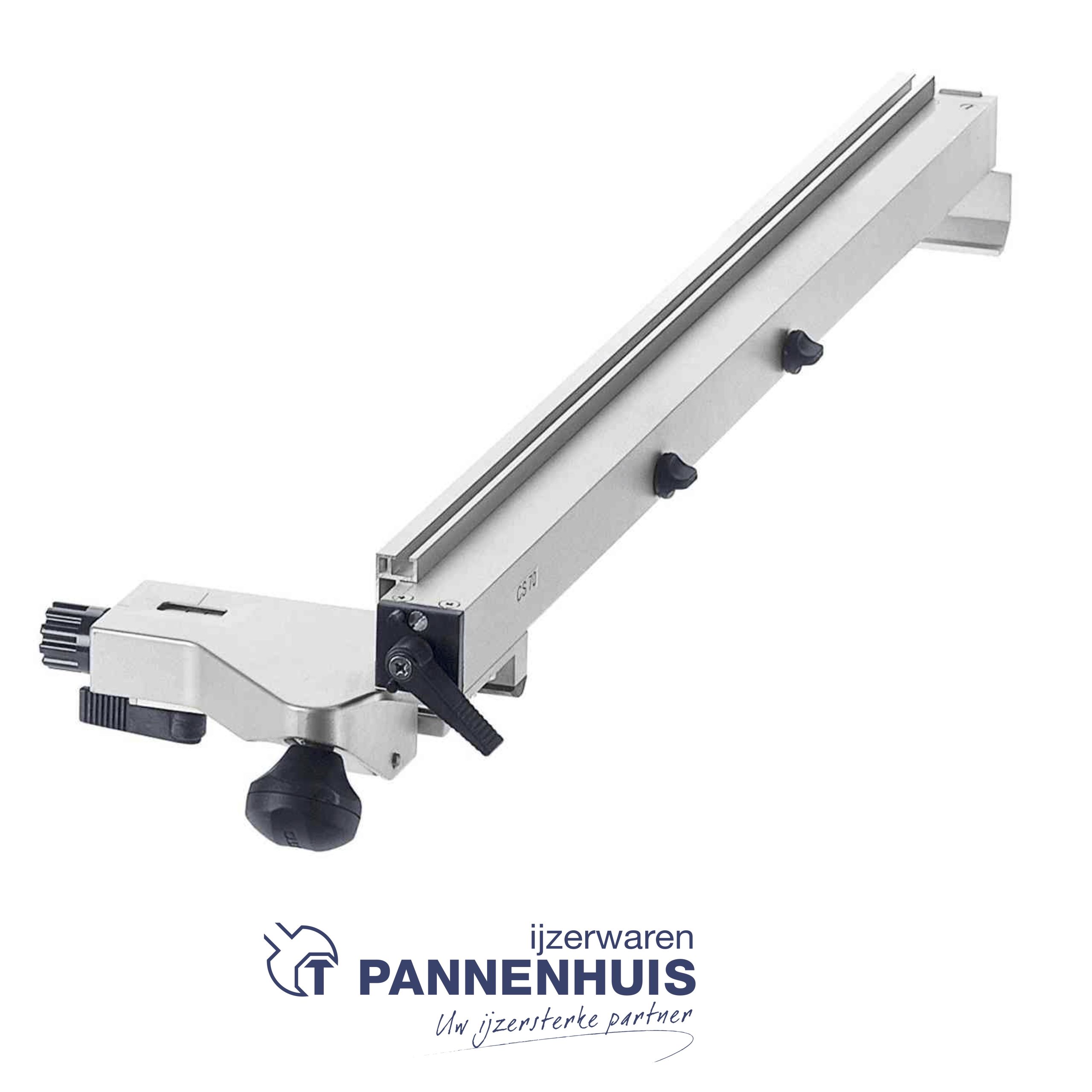 met fijninstelling en klemming aan de voorkant bedienbaar, met verwisselbare aanslagprofiel voor precieze en veilige zaagsneden