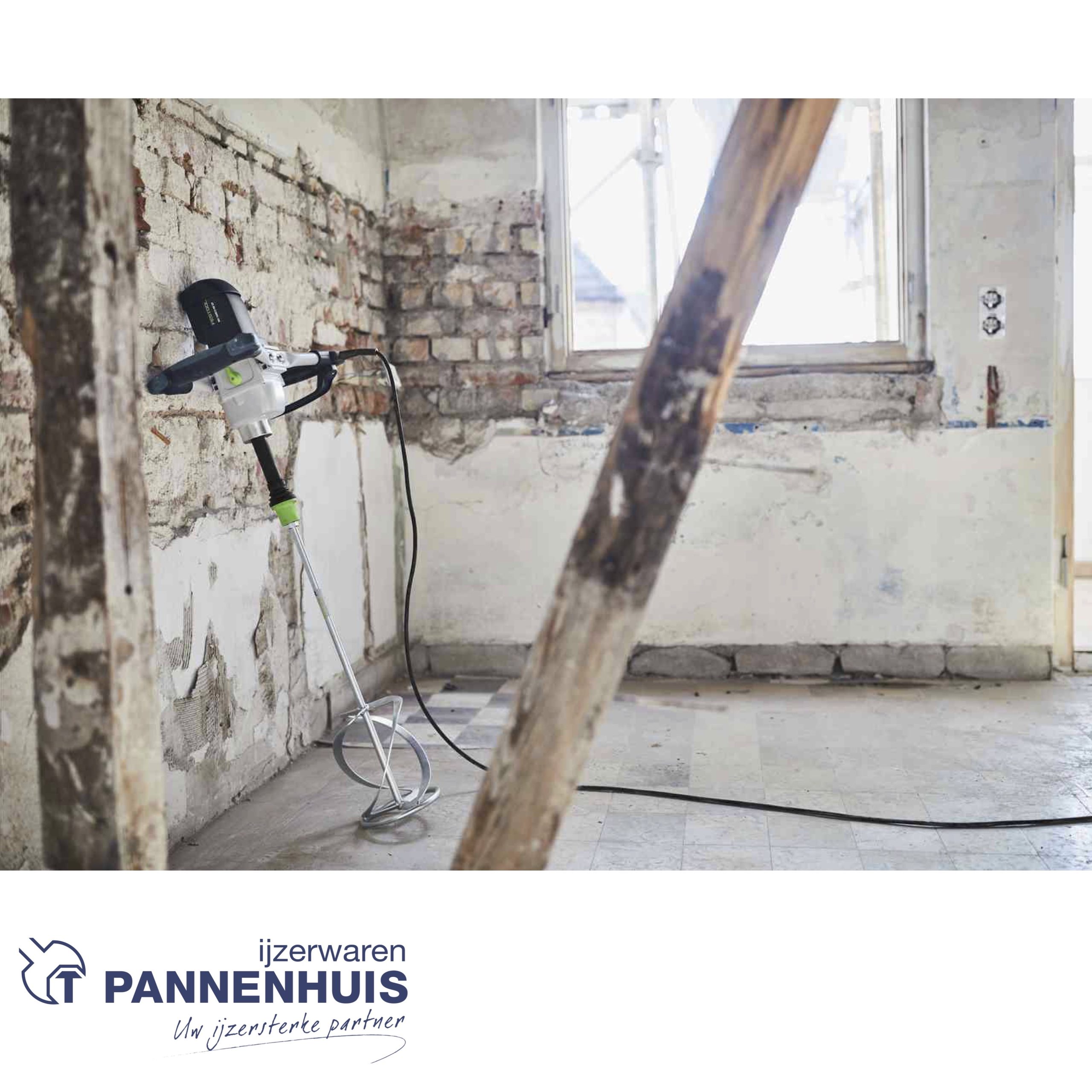 Met de MX mengmachines inclusief MX-afzuiging, die gewoon aan de rand van de emmer wordt geklemd, mengt u vanaf nu elk materiaal bijna zonder stof.