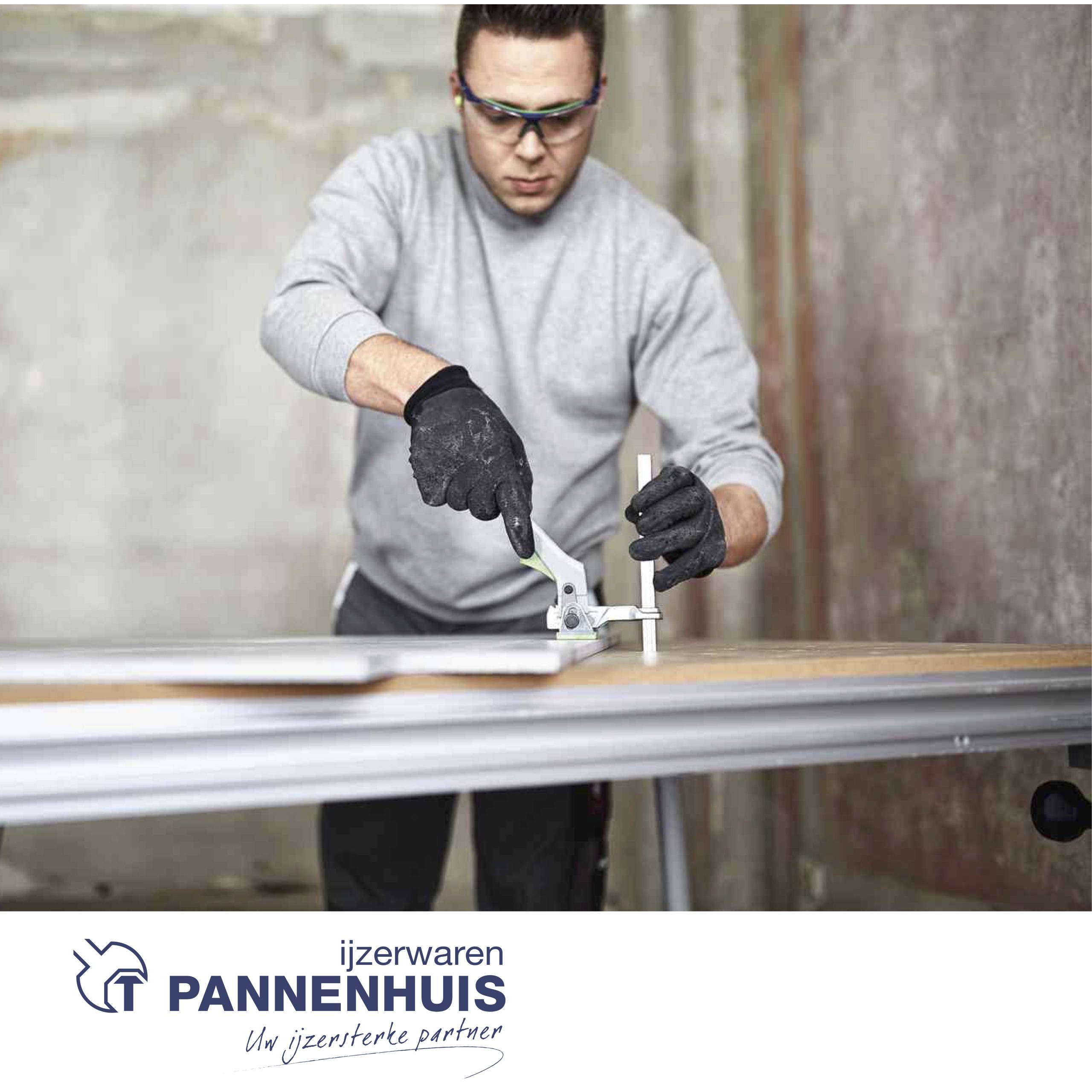 Om de geleiderail goed te bevestigen, wordt in de onderste groef ingezet