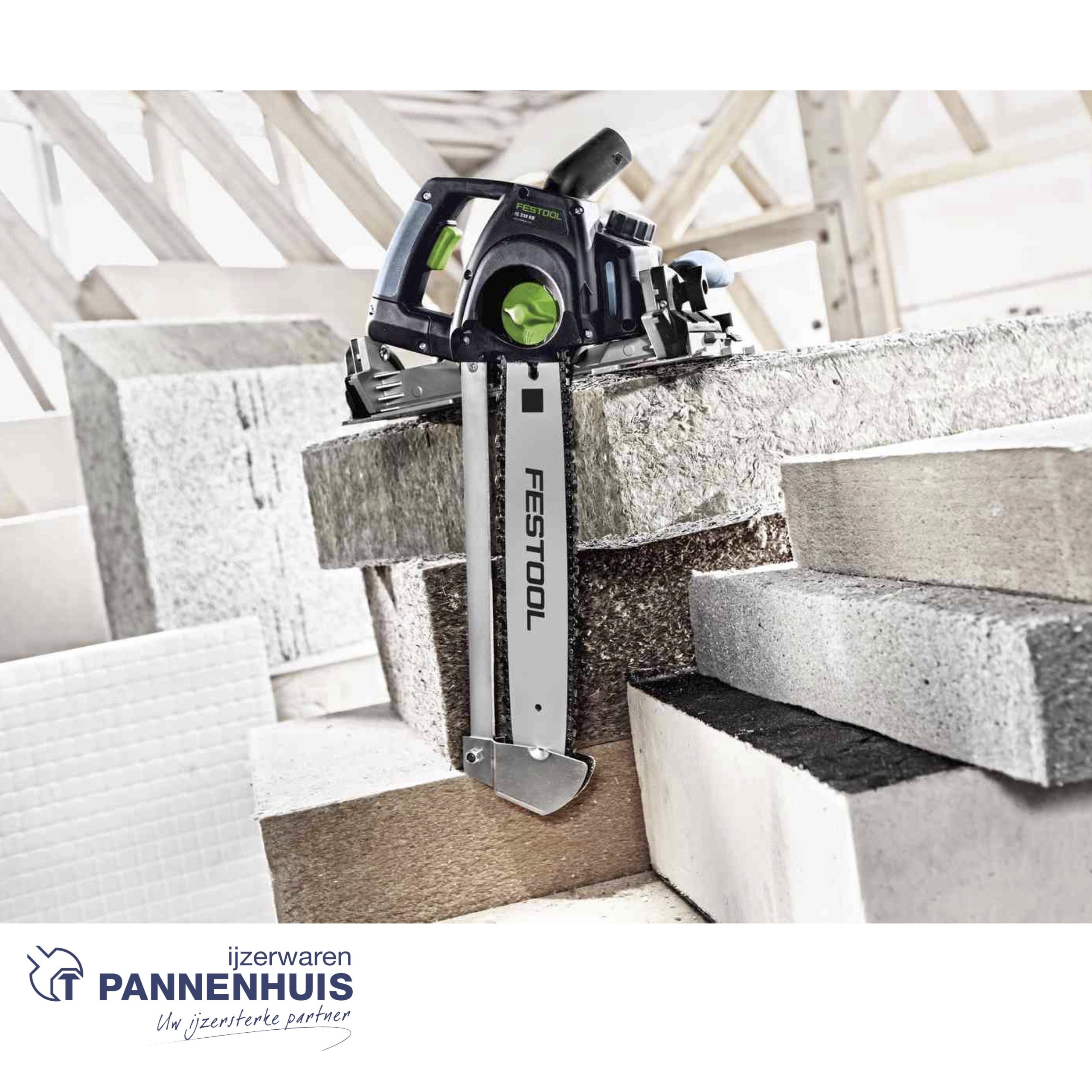 De specialist voor het zagen van isolatiematerialen. De zwaardzaag IS 330 combineert de voordelen van een kettingzaag en handcirkelzaag met geleiderail in een uniek mobiel systeem met een zaagdiepte van 330 mm. Hiermee kan drukvast isolatiemateriaal, zoals houtvezel- en PU-plaatmateriaal, gemakkelijk, snel en – dankzij de geleiderail – vooral exact pas worden gezaagd.