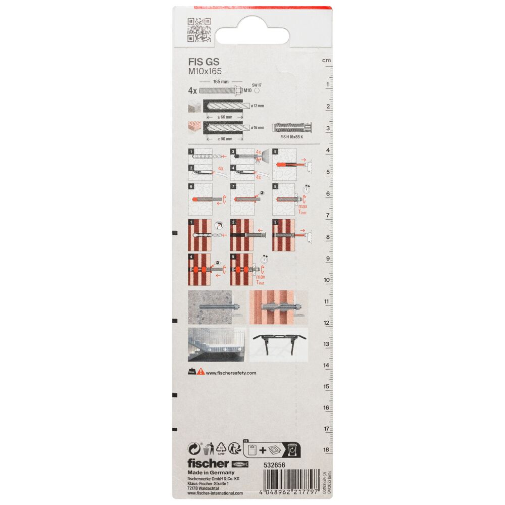 Inhoud 4 x FIS GS M 10 x 165 + Onderlegringen en moeren