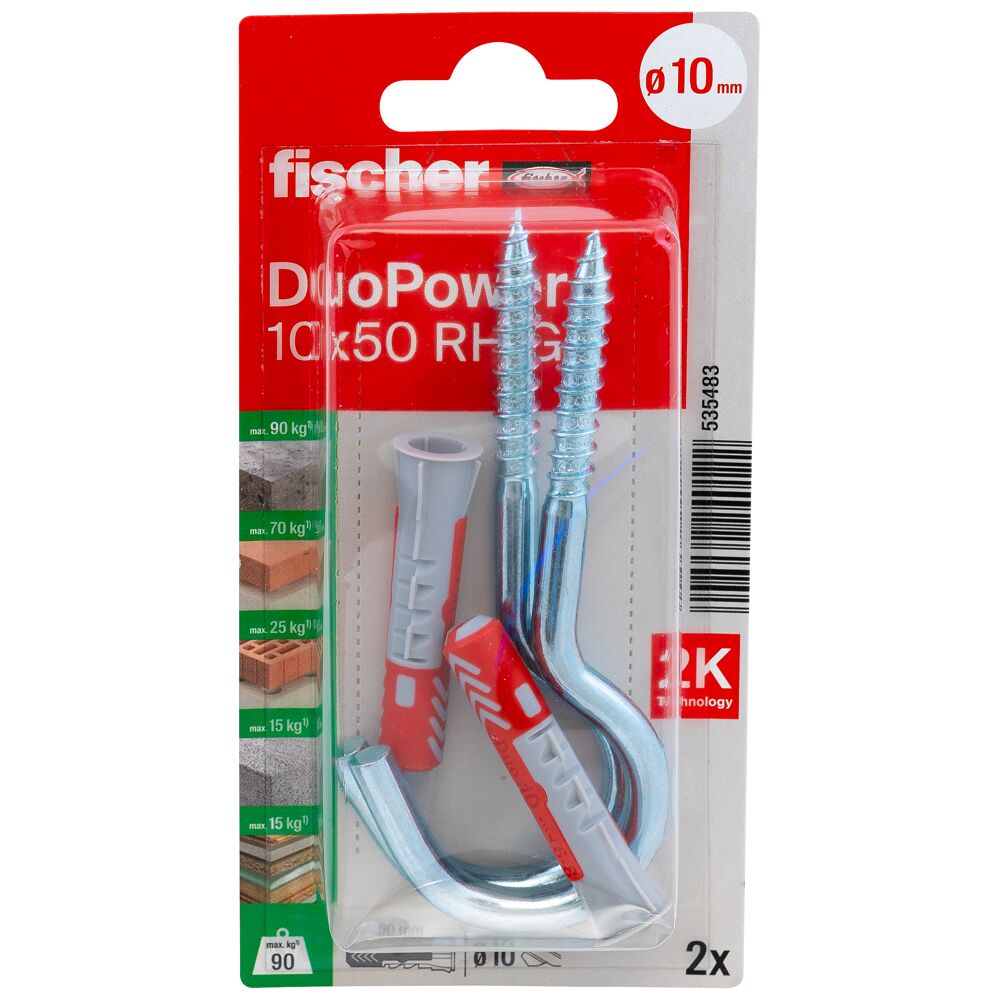 De fischer DuoPower is een slimme 2-componenten plug met drie verschillende werkingsprincipes. De slimme universele plug is geschikt voor bevestigingen in alle bouwmaterialen. Hierdoor ontstaan velerlei soorten toepassingen met slechts één plug. De fischer DuoPower past zich zelfstandig aan het bouwmateriaal aan verdeelt door de drie werkingsprincipes spreiden, tikken en knopen de zwaarste lasten over het bouwmateriaal. De uitermate goede reactie bij het indraaien van de schroef zorgt voor extra veiligheid. De fischer DuoPower 6 x 50, 8 x 65 en 10 x 80 zijn door de grotere verankeringsdiepte bijzonder geschikt voor bevestigingen in geperforeerd bouwmateriaal, cellenbeton en voor het overbruggen van pleisterlagen.