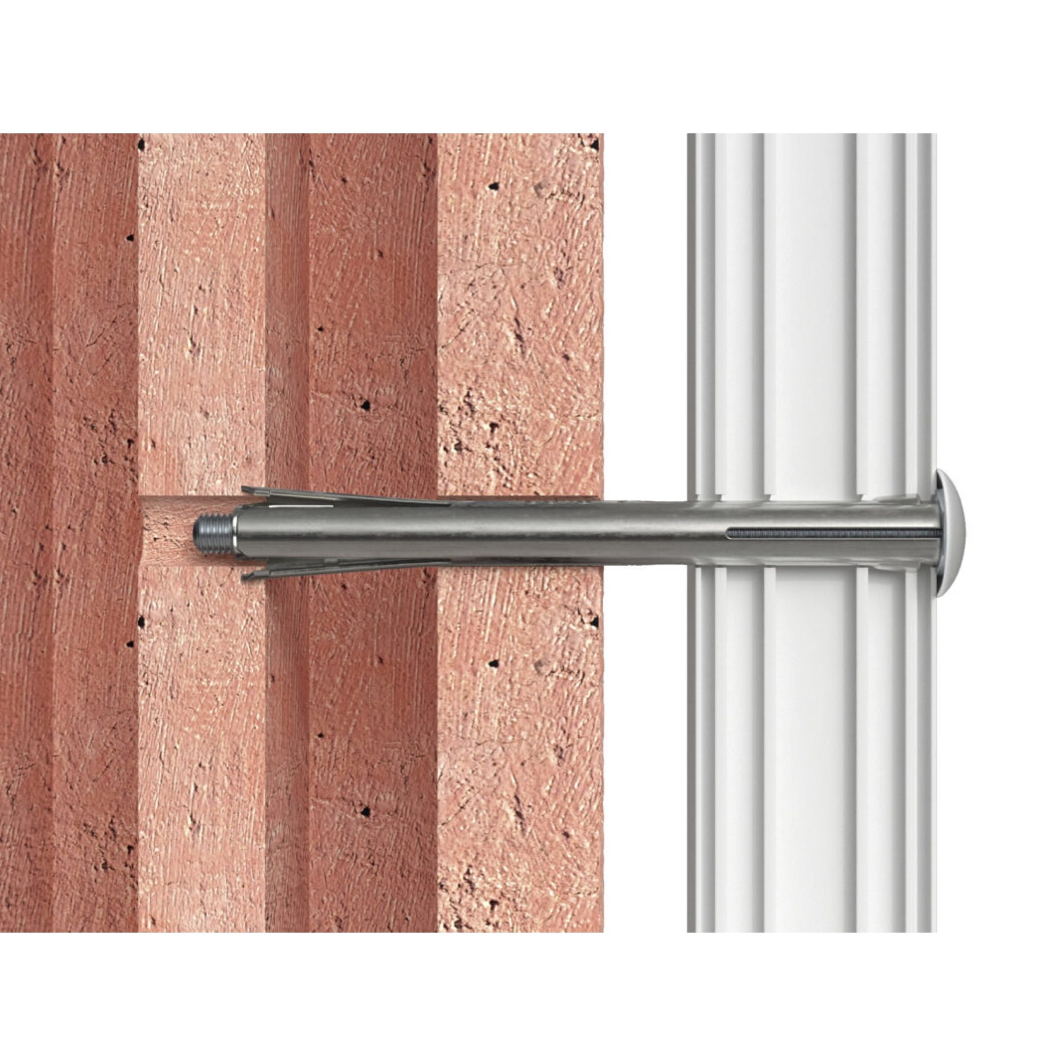 De fischer Metalen kozijnplug F 10 M is een speciale plug voor een spanningsvrije afstandsmontage van raam- en deurkozijnen. De plug bestaat uit een metalen huls en een schroef met verzonken kop van gegalvaniseerd staal. De F 10 M wordt in de tijdbesparende doorsteekmontage geplaatst. Bij het aandraaien van de schroef wordt de conus in de huls getrokken, spreidt open en spant deze tegen de wand van het boorgat. Zo wordt het kozijn spanningsvrij in massieve en geperforeerde bouwmaterialen bevestigd. De fischer Metalen kozijnplug F 10 M is behalve voor de bevestiging van raam- en deurkozijnen ook geschikt voor kanthout.