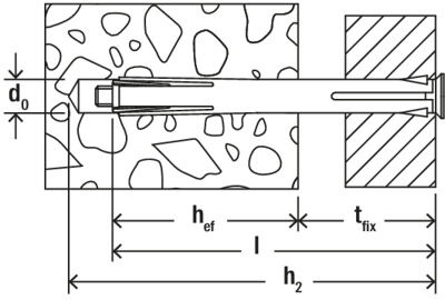 Min. boorgatdiepte bij doorsteekmontage (h2) 130 mm