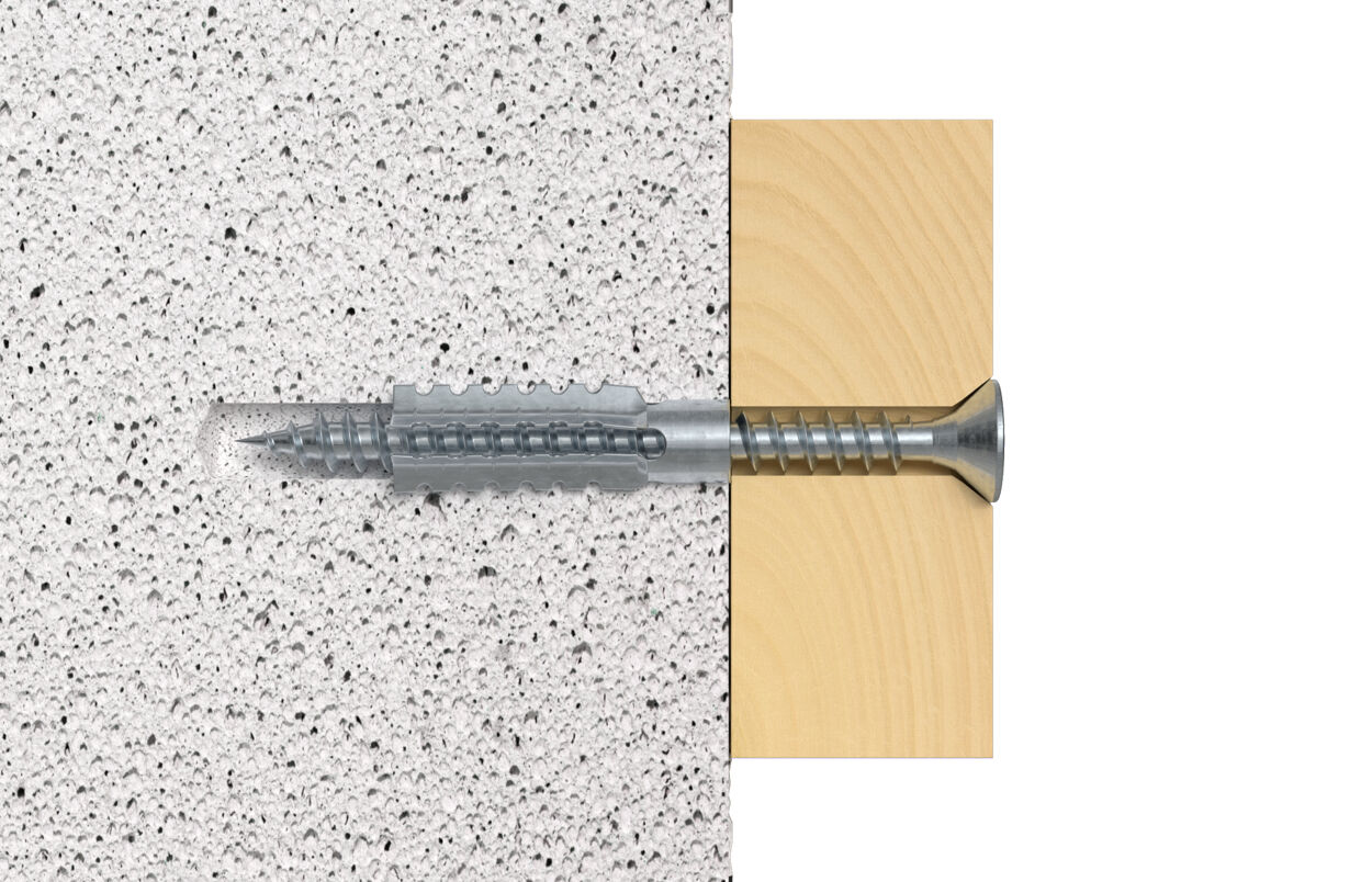 Rechtstreeks zonder voorboren in cellenbeton inslaan.
