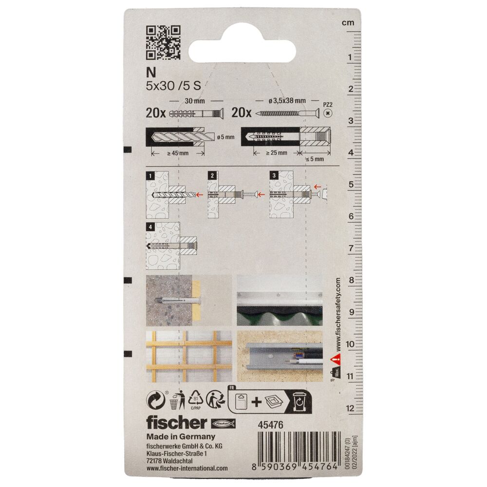 fischer Nagelplug N 5 x 30/5 S met verzonken kop