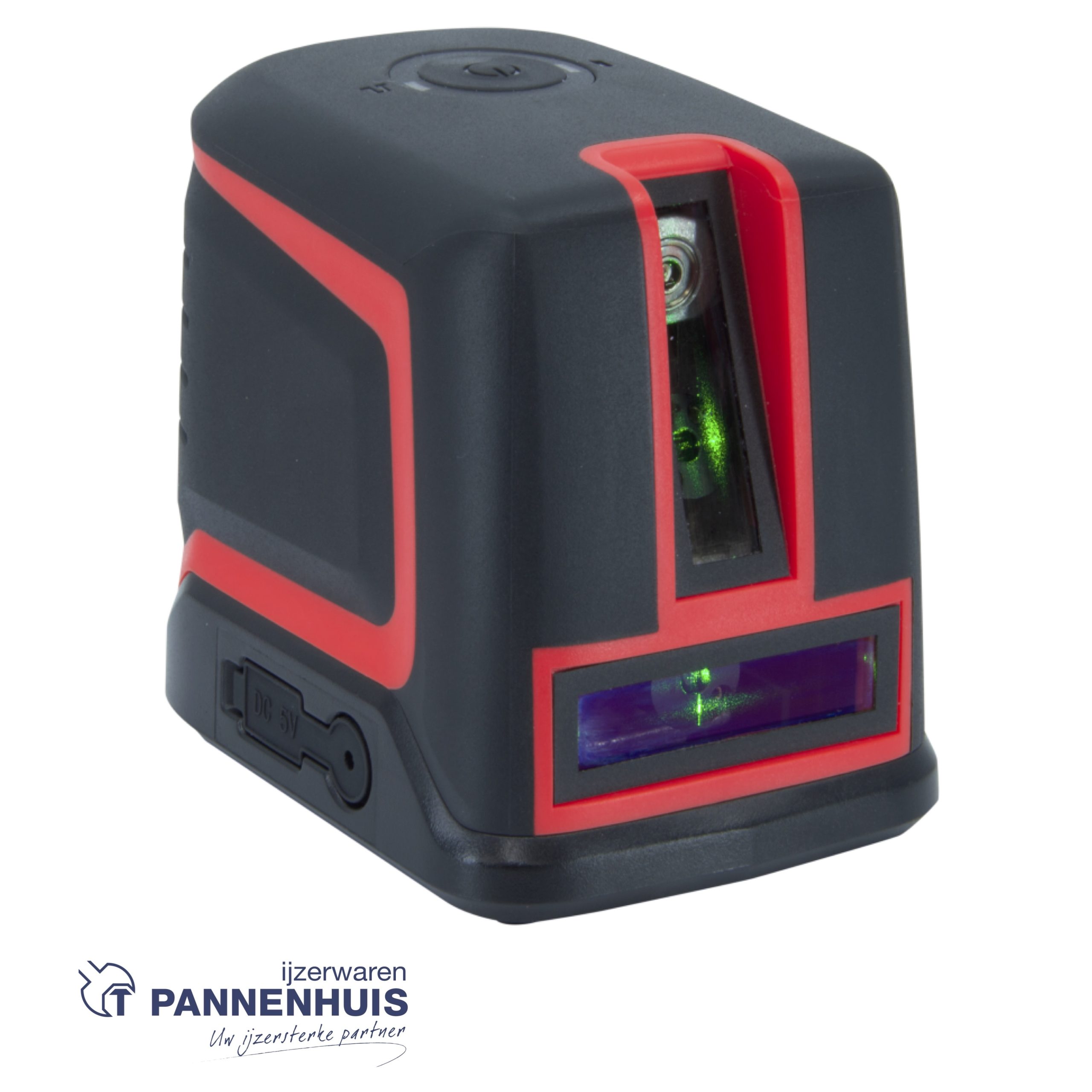 Lijnlaser met 1 groene horizontale en 1 verticale lijn.
