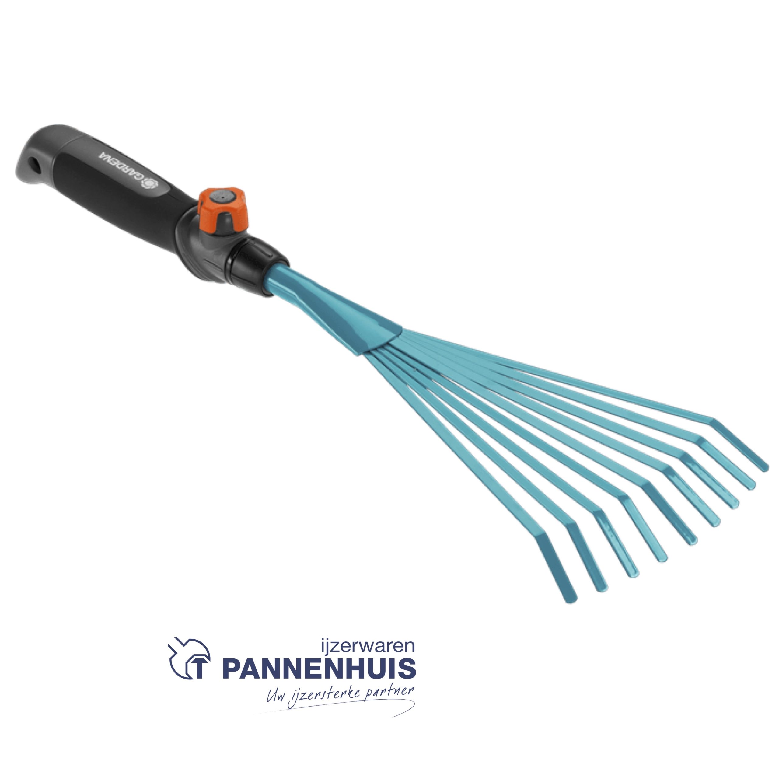 Het GARDENA combisystem bladharkje is ideaal om bladeren, onkruid en gemaaid gras op te ruimen.
