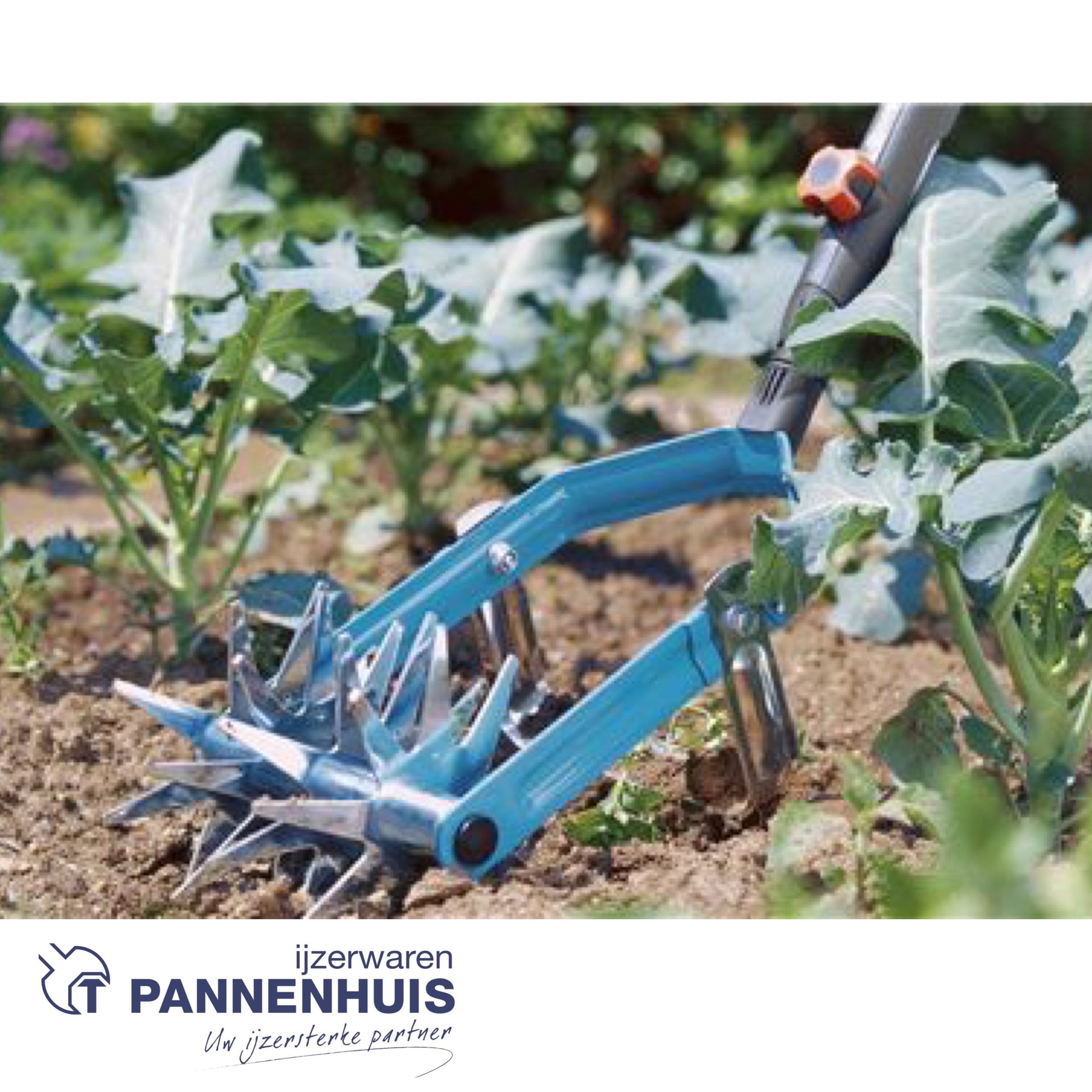 De extra wiedbeugel maakt het mogelijk tegelijk onkruid te wieden: ideaal voor zandgrond.