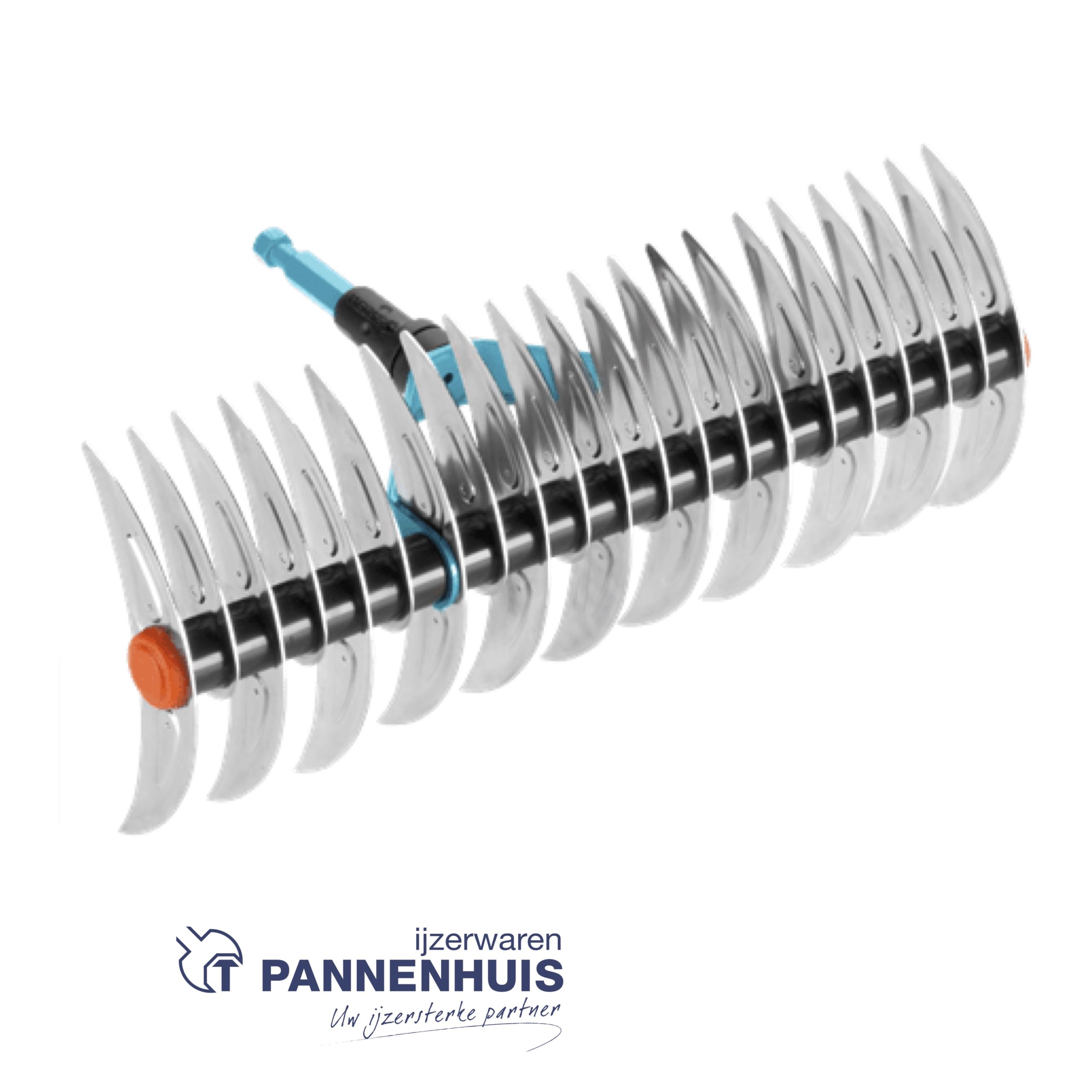 Met de spitse tanden aan de ene kant, die over een werkbreedte van 35 cm een paar millimeter diep de grond binnendringen, verwijdert u mos en gazonvilt.