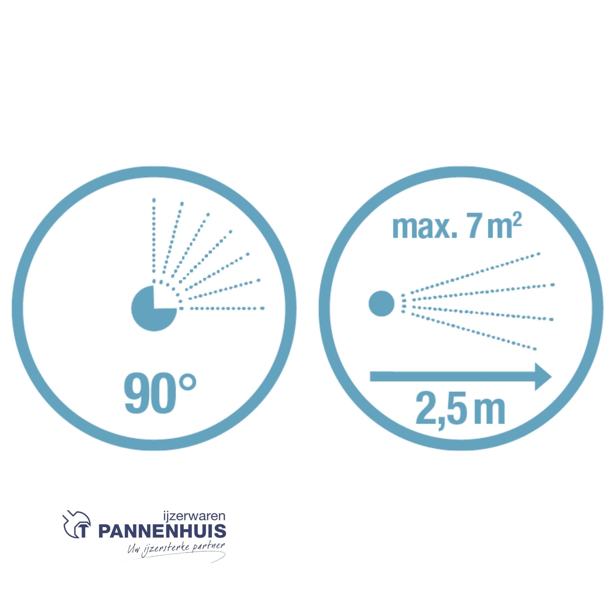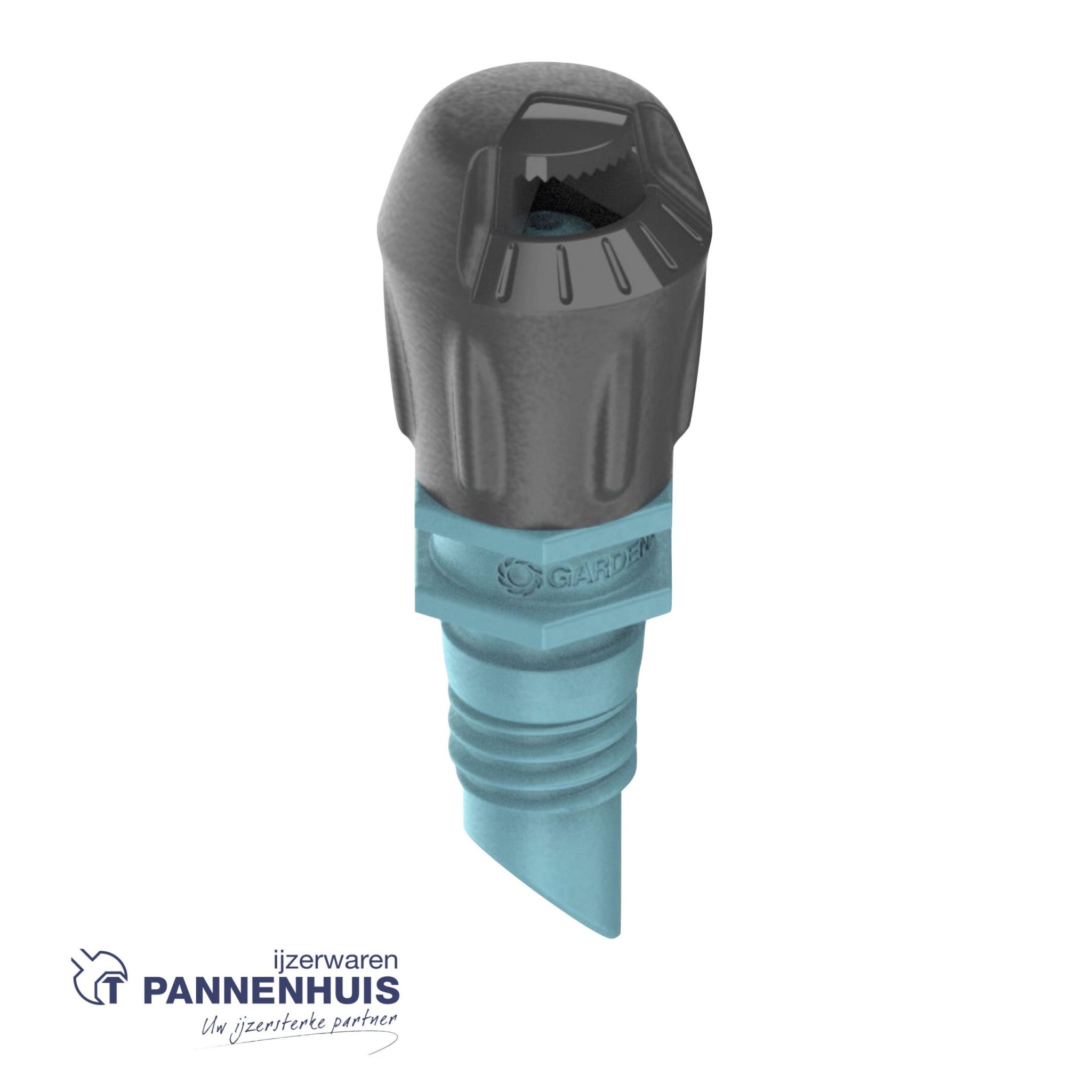 Met de Sproeier 90° van GARDENA bewater je je planten op betrouwbare wijze, tot zelfs in de hoeken en randen van de perken. Het Micro-Drip-System-onderdeel voorziet je moestuin en bloembedden van een fijne sproeinevel over een gebied van 90°, idealiter vanaf de hoek van de perk. Hij heeft een bereik van 2,75 m en bewatert betrouwbaar een totaal oppervlak van 7 m². De sproeier is makkelijk en eenvoudig op een 13 mm Koppelingsbuis aan te sluiten met behulp van het Montagegereedschap of door het T-stuk voor Sproeiers te gebruiken. Met de Verlengbuis voor Sproeiers (art. nr. 13326-20) kan je de positie van de Sproeier 90° verhogen om grotere planten van bovenaf water te geven. Als je de bewatering wil reguleren of afzonderlijke vertakkingen van de Koppelingsbuis volledig wil afsluiten, is het Afsluitventiel (art. nr. 13207-20) de juiste accessoire voor jou. Dit zorgt voor een optimale, waterzuinige bewatering. Dankzij het intuïtief ontwerp kan je het sproeipatroon meteen zien op de sproeikop, waardoor je duidelijk alle GARDENA-Sproeiers van elkaar kan onderscheiden. De Sproeier 90° is een in Duitsland gemaakt kwaliteitsproduct. Micro-Drip-System. Zo zorg je goed voor je planten maar bespaar je toch water. Makkelijk en nauwkeurig bewateren, om water en tijd te besparen.