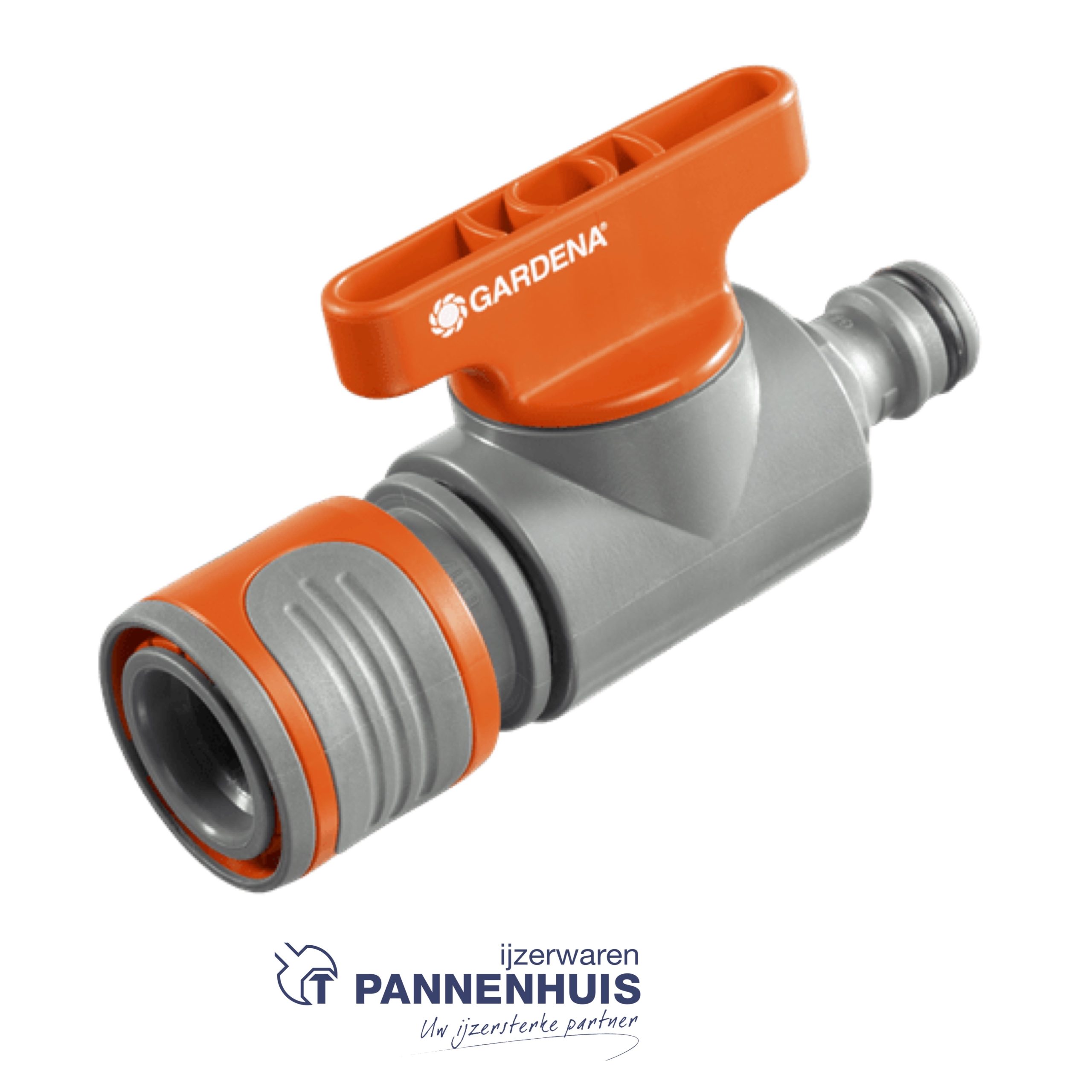 De GARDENA koppeling met reguleerventiel regelt traploos de waterdoorvoer in de slang aan het begin van een 3-wegstuk.