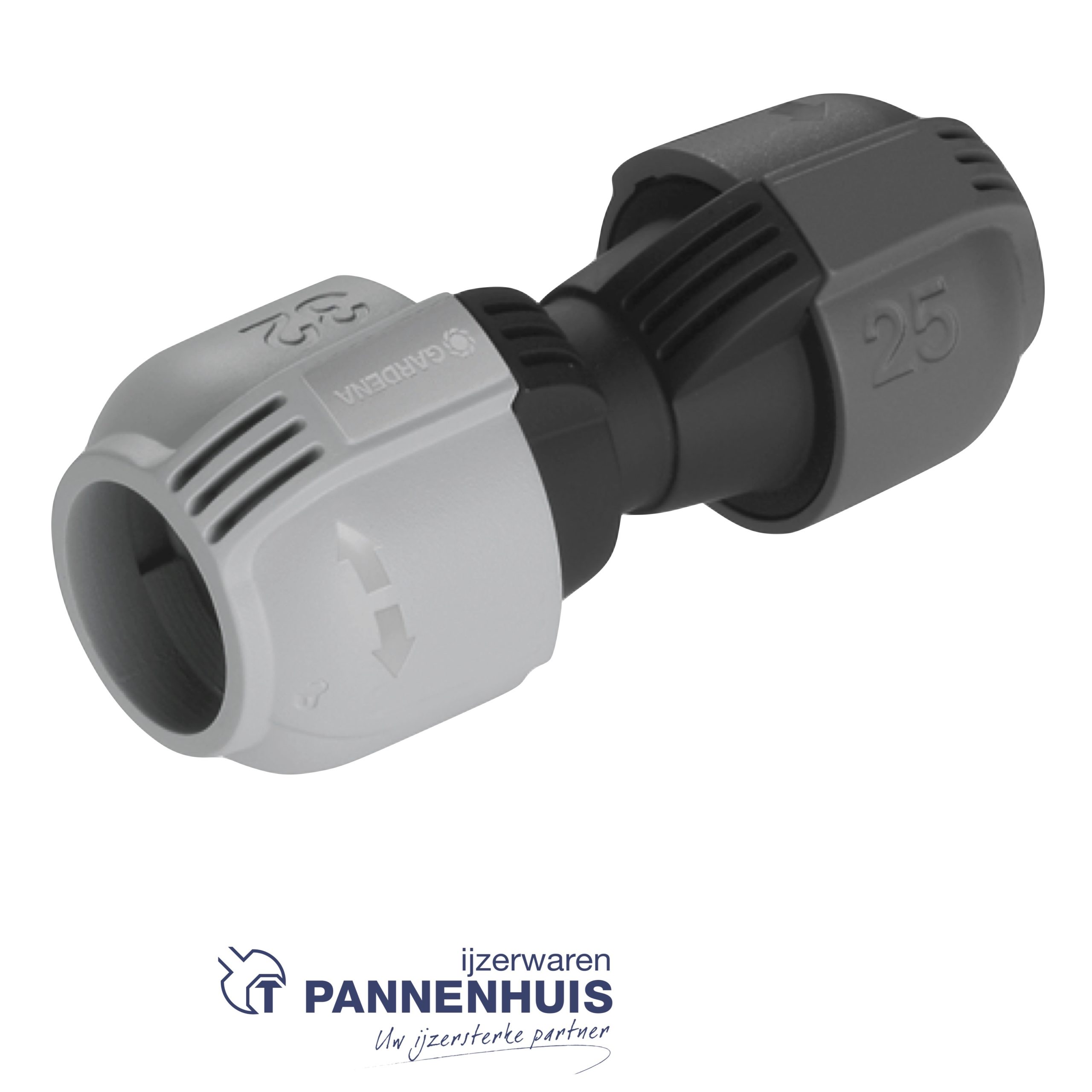 Met het GARDENA Reductie adapter 32 – 25 mm – als onderdeel van het GARDENA Sprinklersystem – kunt u eenvoudig over gaan van een 32 mm buis naar een 25 mm buis.