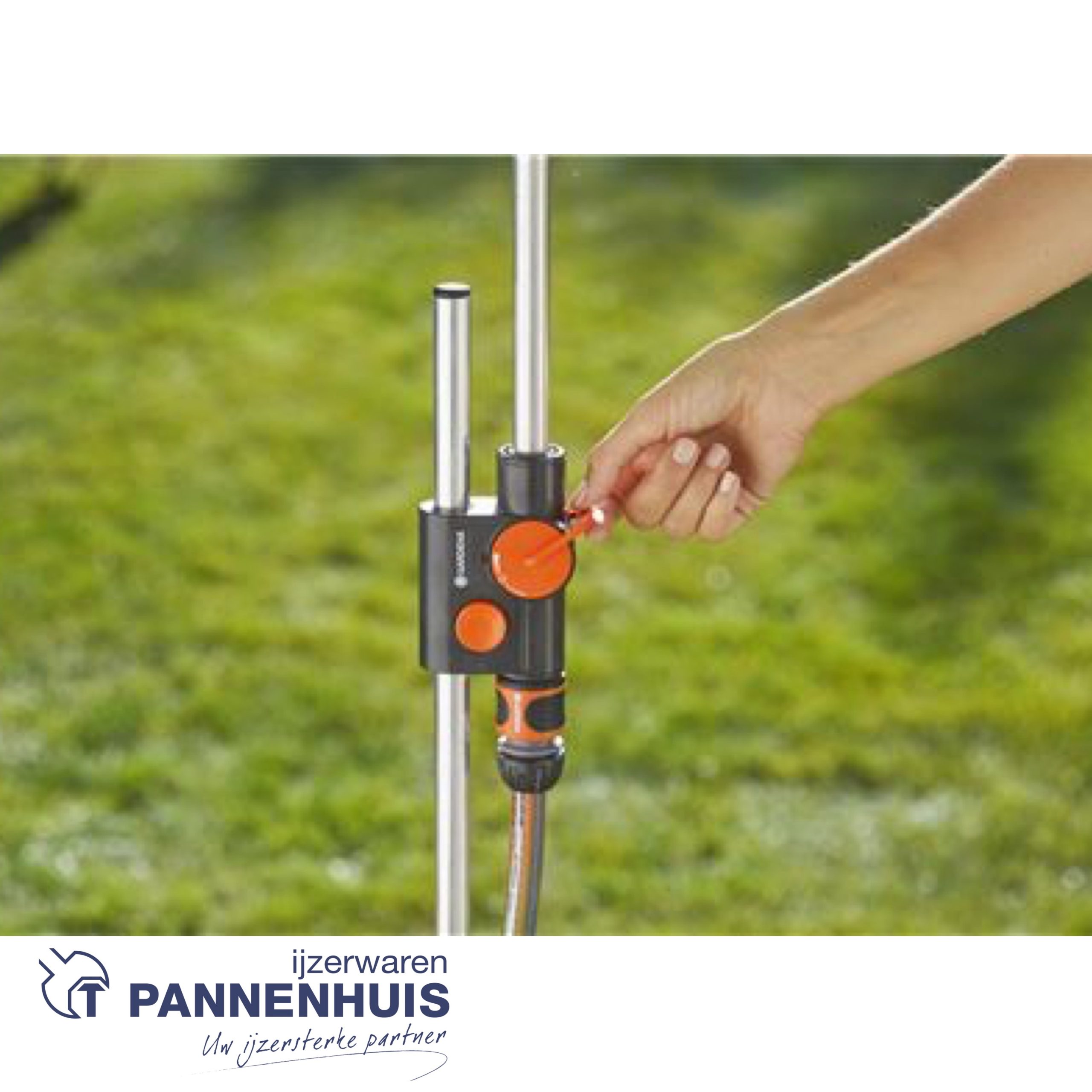 Met de spike kan de tuindouche eenvoudig in het gazon of in de parasolhouder op het terras worden gestoken.