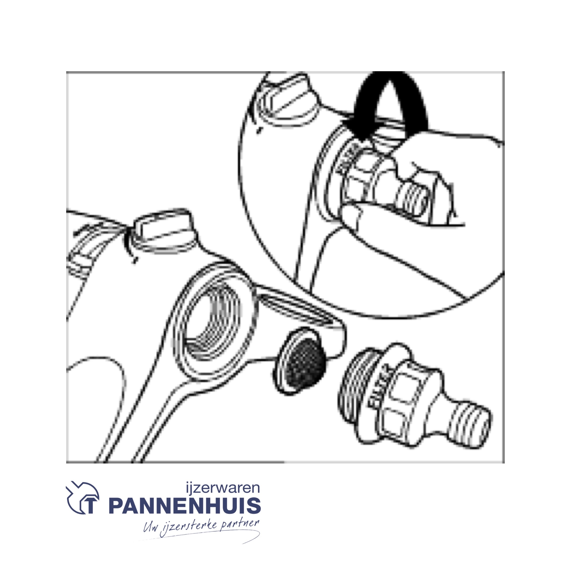 Bovendien is de wateraansluiting voorzien van een filter van roestvrij staal, dat voorkomt dat vuildeeltjes in de AquaZoom S terecht komen.