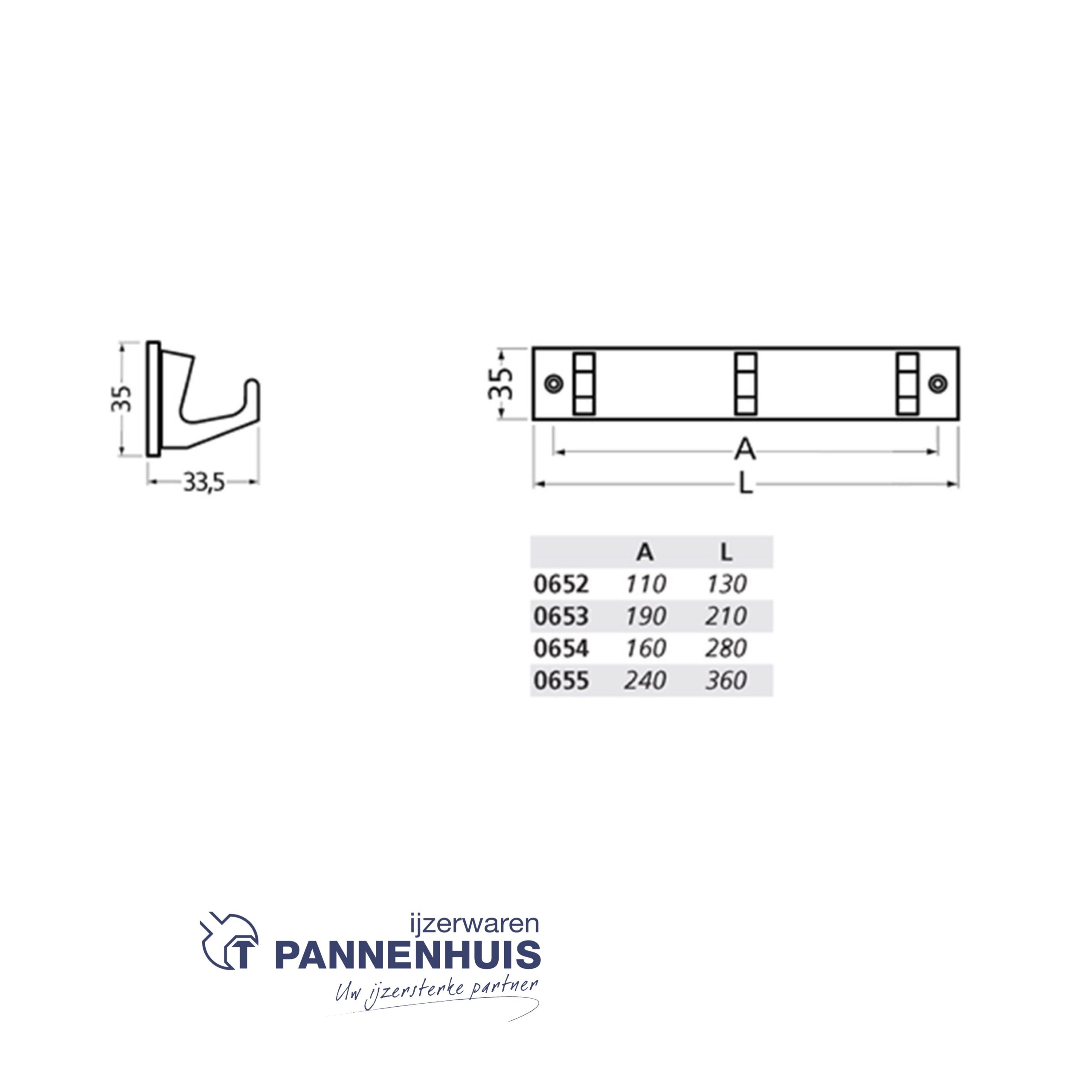 Het handdoekrekje van aluminium profiel (uit de serie 0652-0655):