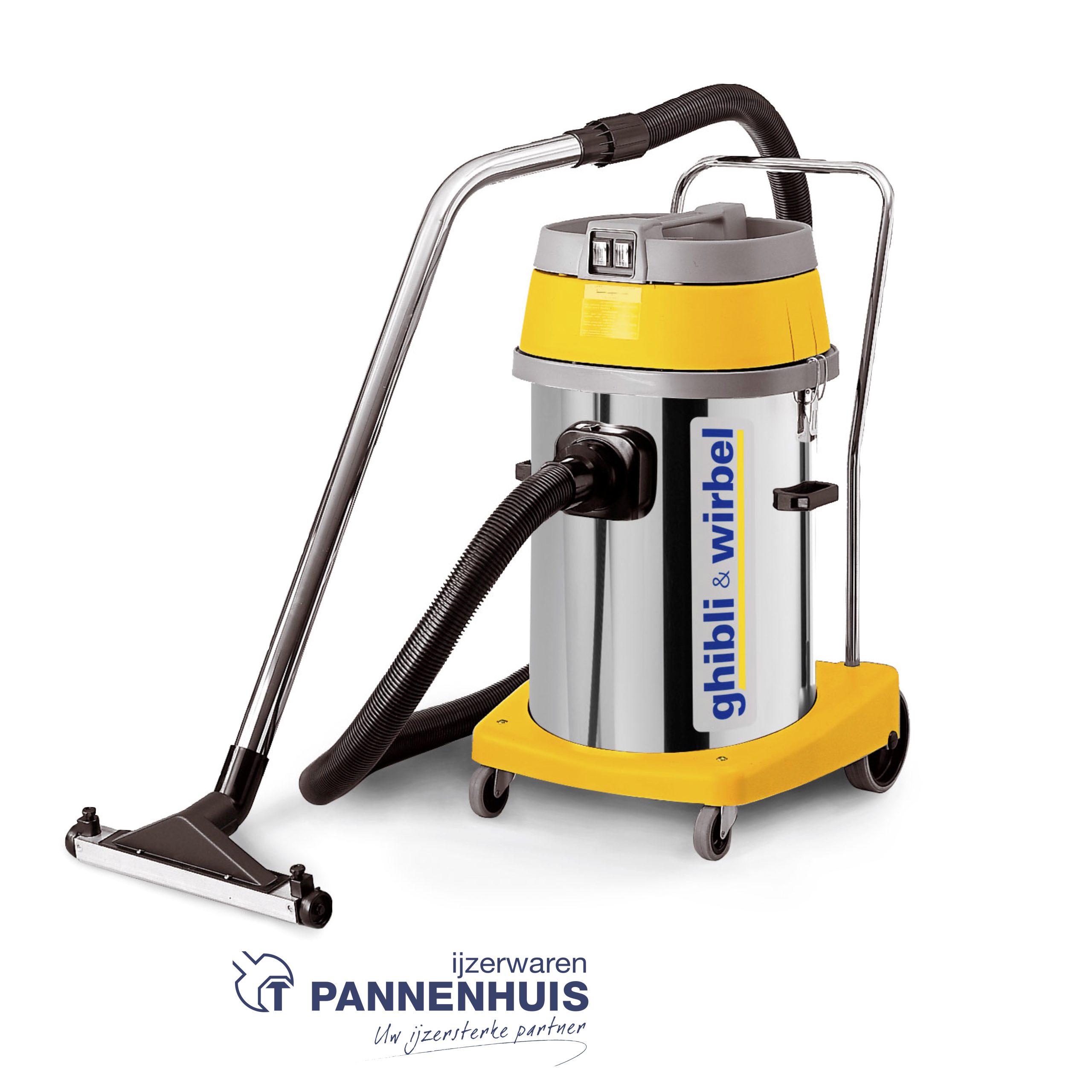 3-motorige industriële stof- en waterzuiger dewelke uiterst geschikt is voor het reinigen van grotere oppervlakten gezien de tank-en motorcapaciteit