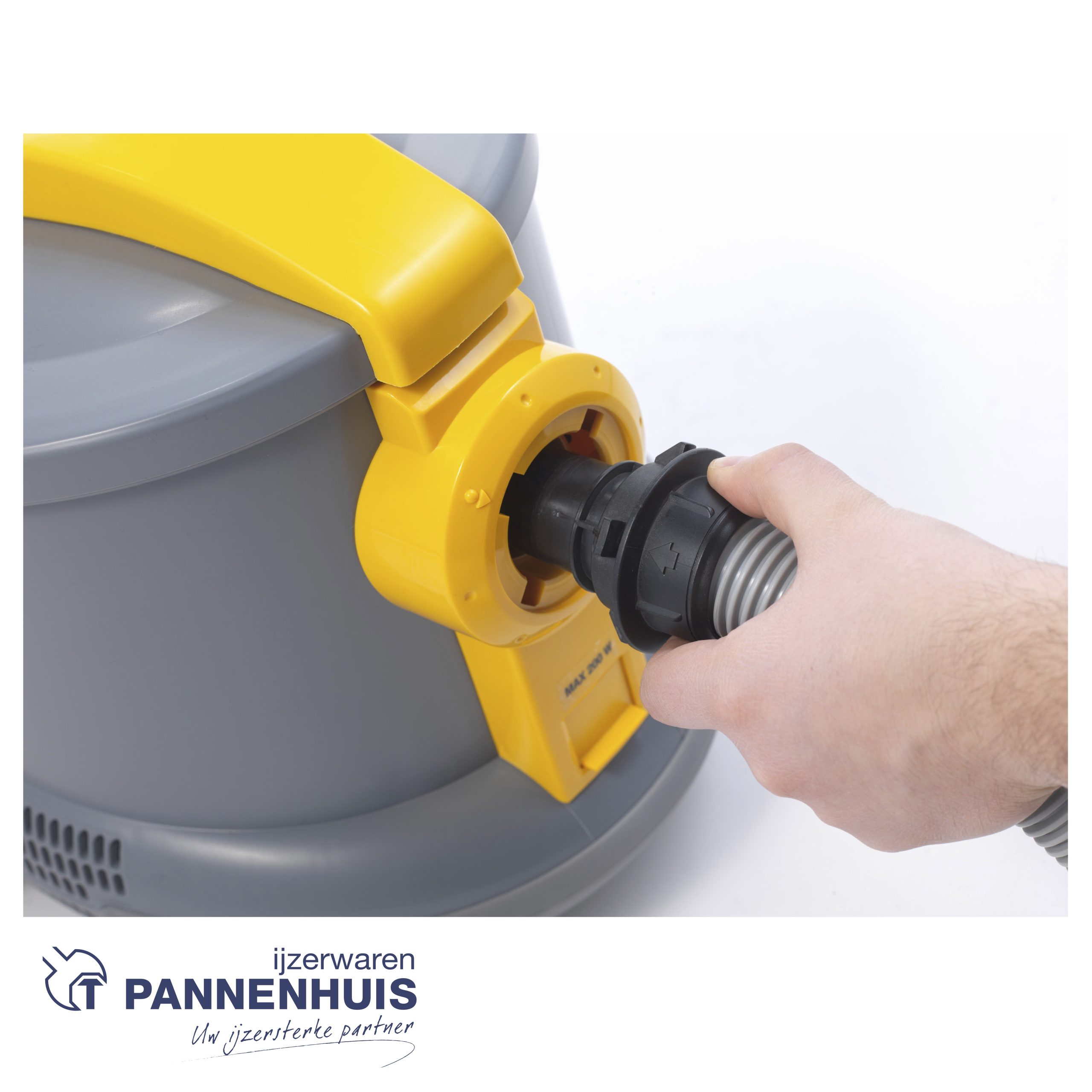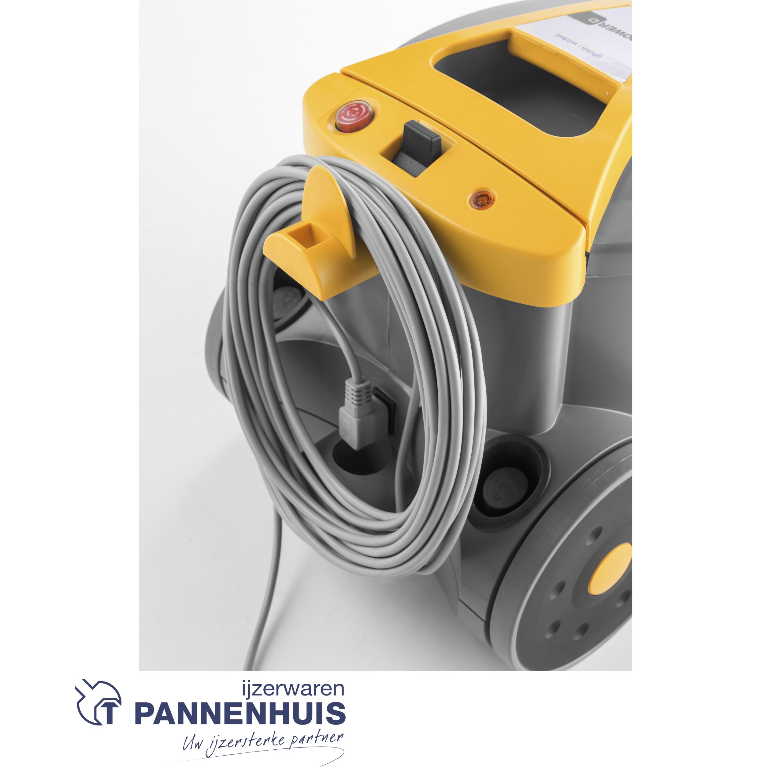 Voorzien van een aansluiting voor een elektroborstel (art. 2512537) voor het reinigen van langharig tapijt en een extra lang elektrisch snoer van 15 m