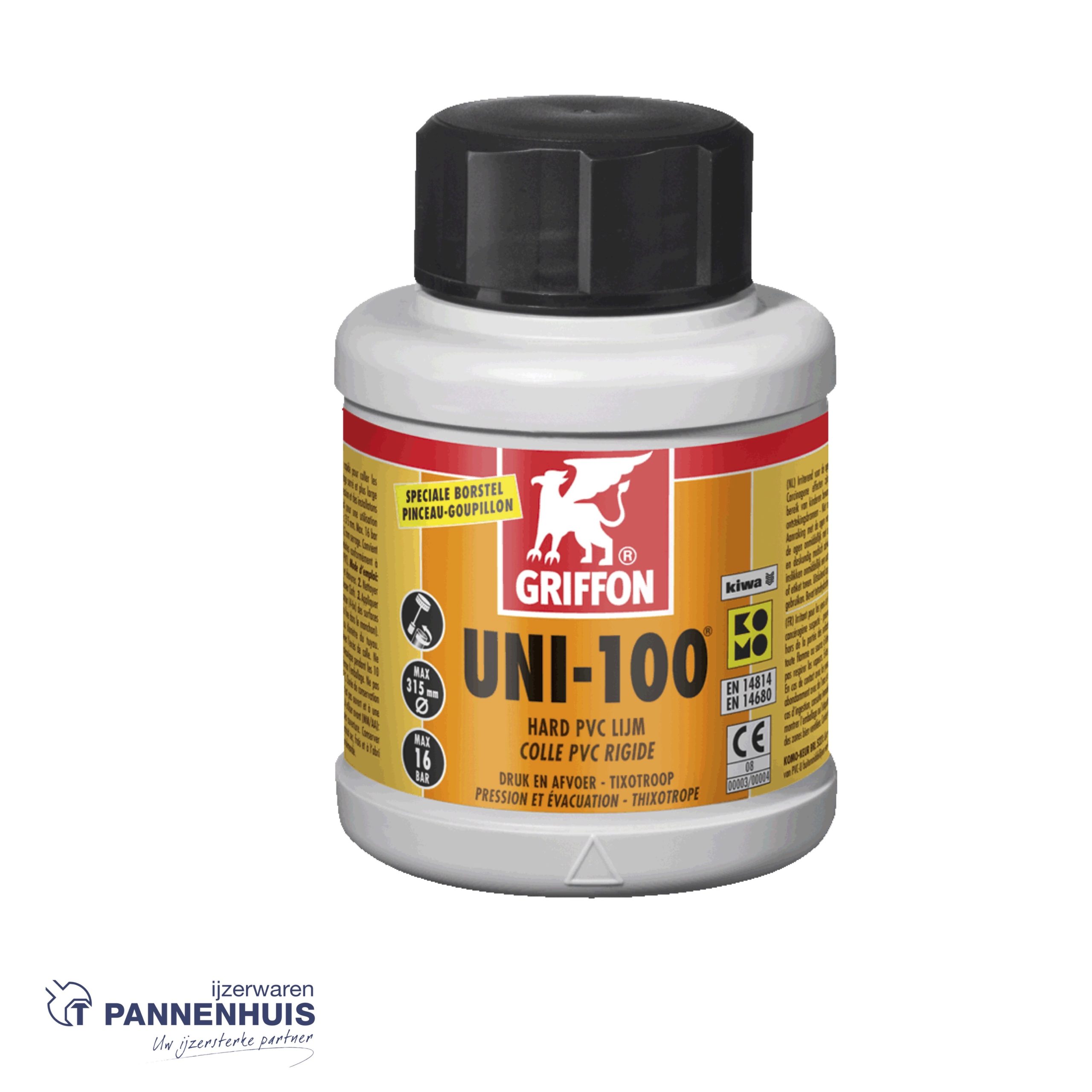 1. Buizen haaks afzagen, afschuinen en ontbramen. 2. Lijmoppervlakken reinigen met Griffon Cleaner en Cleaner Cloth. 3. Lijm snel en gelijkmatig rondom (4-6x) aanbrengen op beide lijmvlakken (buis dik, mof dun). 4. Verbinding direct monteren. Overtollige lijm verwijderen. Verbinding eerste 10 minuten niet mechanisch belasten. Na gebruik verpakking direct goed sluiten.