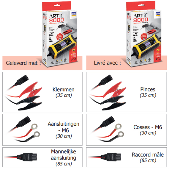 De ARTIC 8000 is speciaal ontworpen voor 12 V accu’s (loodzuur) van 4 tot 160 Ah, maar is tevens geschikt voor druppelladen tot 240 Ah