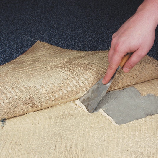 1. Snij de vloerbedekking eerst in stroken, rol deze op en verwijder de vloerbedekking. (Vinyl) vloerbedekking die zich niet laat lostrekken, moet eerst geperforeerd worden met een prikrol of soortgelijk gereedschap.