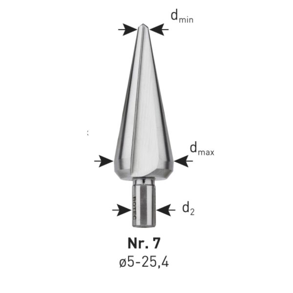 CBN geslepen uit massief HSS-Dmo5. De teruggeslepen conus zorgt ervoor dat bij het doorboren van het materiaal, de boor zonder moeite kan worden teruggetrokken.