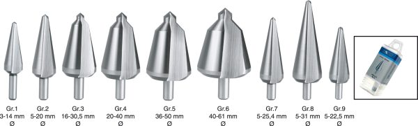 Ideaal gereedschap voor: auto-, elektrotechnische- en vliegtuigindustrie, machinebouw, schakelkasten en loodgieters. Traploos centreren, voorboren en/of opboren zonder dat vervorming optreed van het werkstuk.