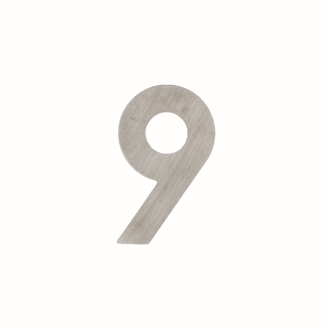 HUISNUMMER PLAT KLEIN ZELFKLEVEND 9 INOX PLUS