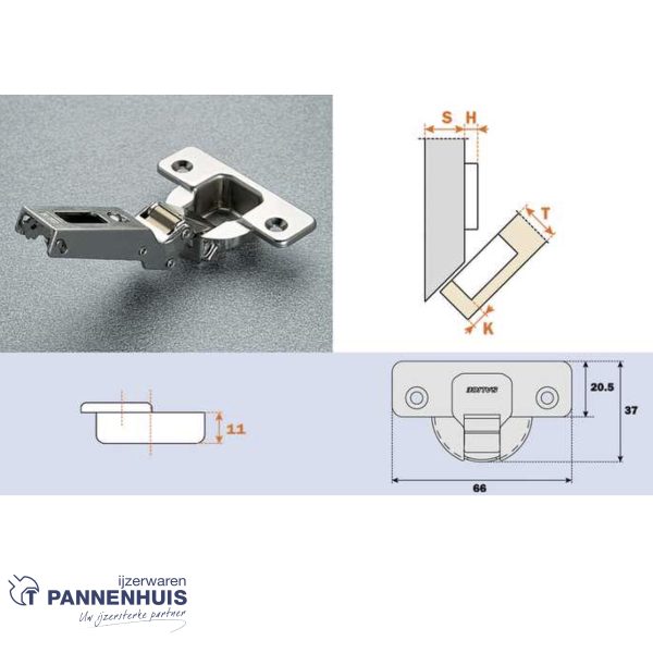 Scharnier type C2A en C2B met negatieve hoek van -45°