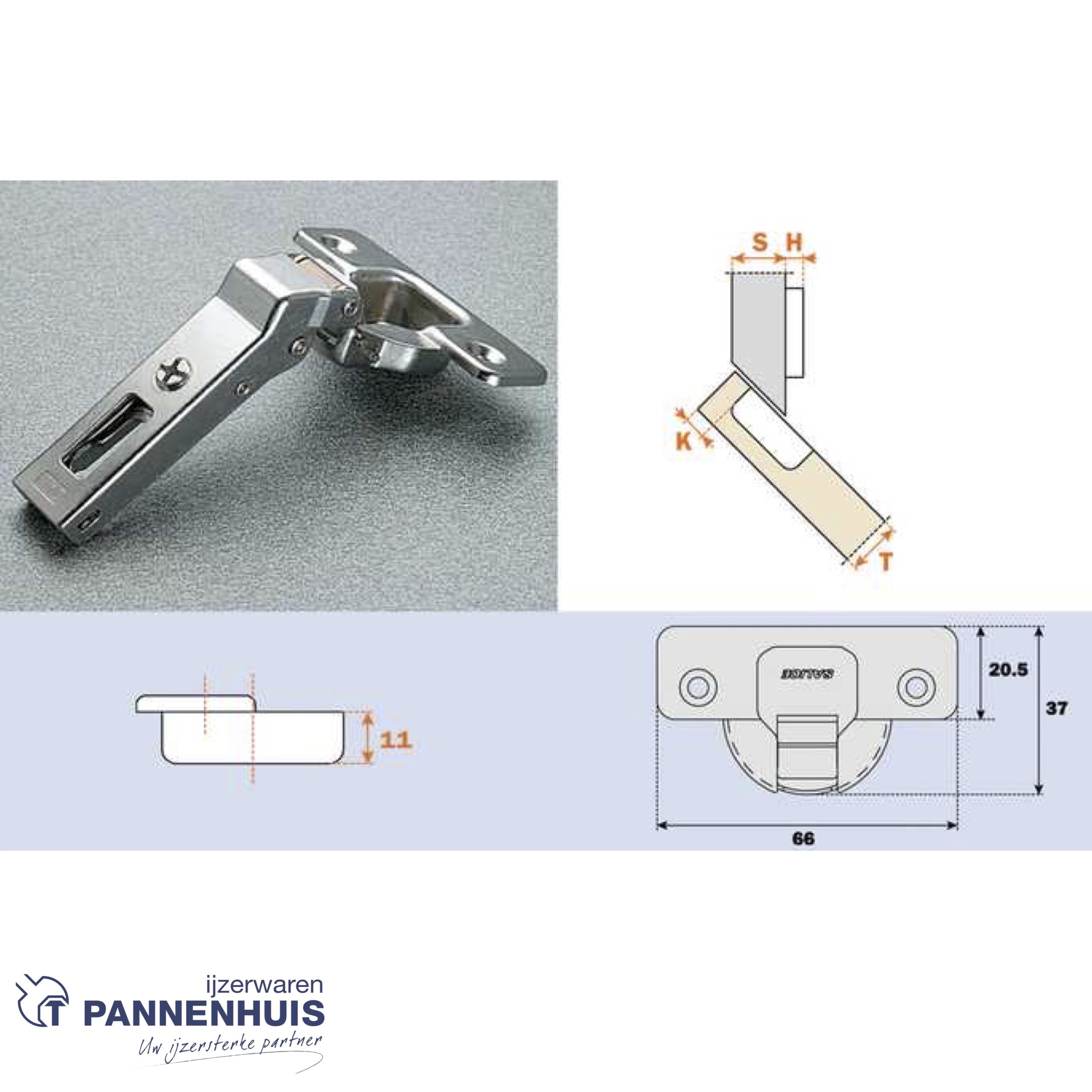 Scharnier type C2A met positieve hoek van 45° voor vrijstaande kasten
