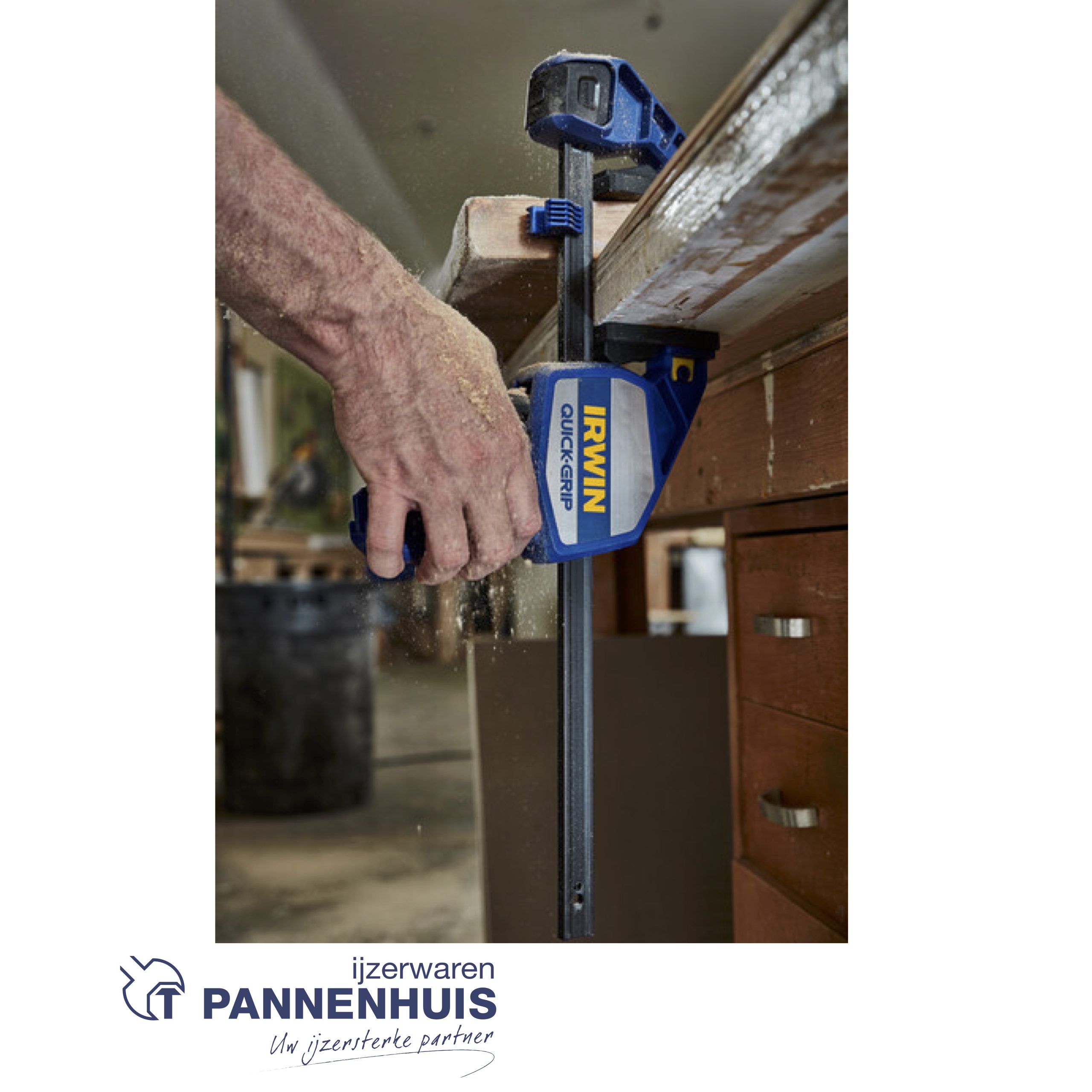 De IRWIN® QUICK-GRIP® Heavy-Duty eenhandige staafklem verdeelt gelijkmatig tot 272kg (600 lbs.) Aanhoudende klemdruk en is een van de best presterende eenhandige staafklemmen op de markt. Ideaal voor zware toepassingen zoals installatie, sloop en ruwe verlijming.