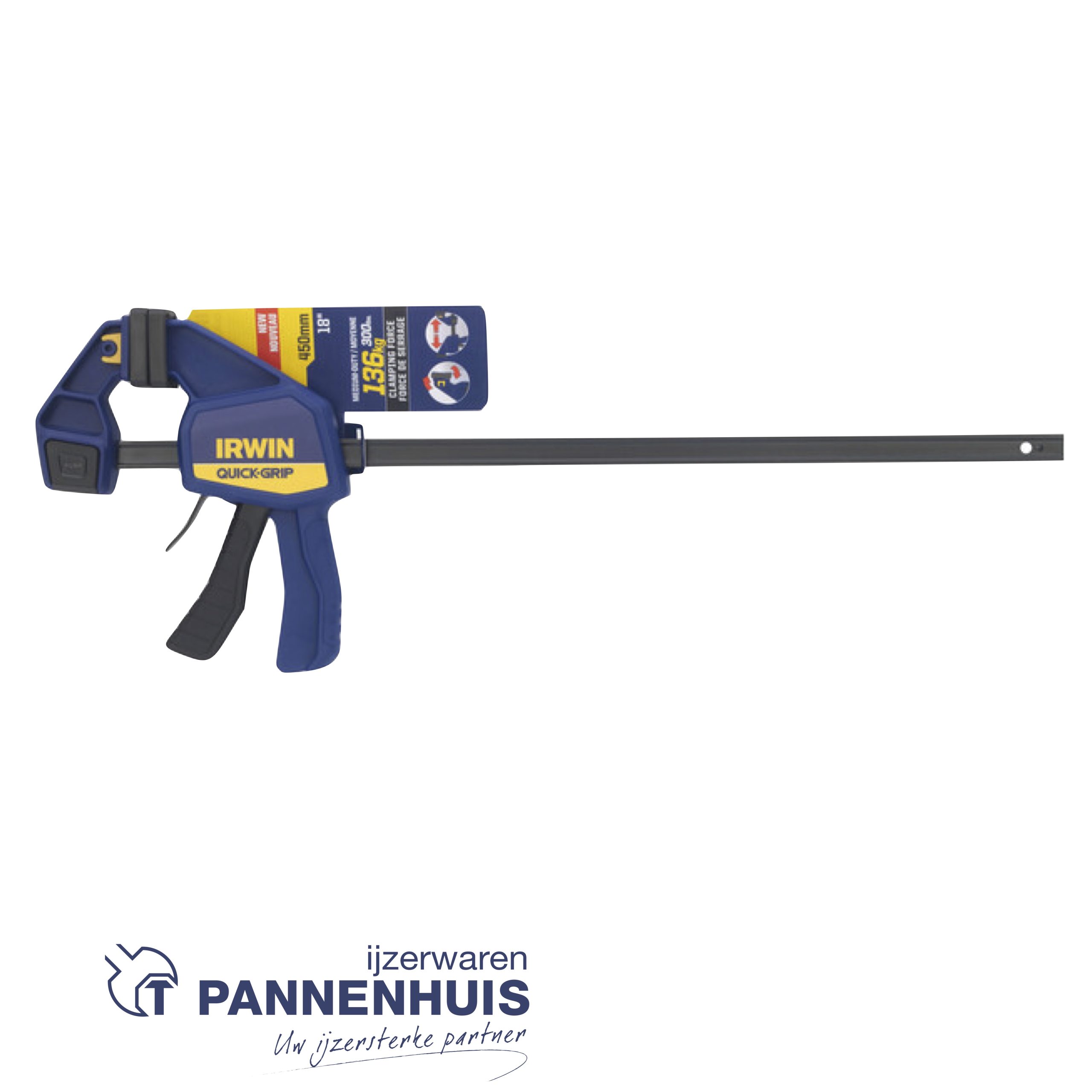 De IRWIN® QUICK-GRIP® middelzware staafklem met een hand verdeelt gelijkmatig tot 136kg (300 lbs) aanhoudende klemkracht. Ideaal voor tijdelijke vasthoud-, snelklemtoepassingen
