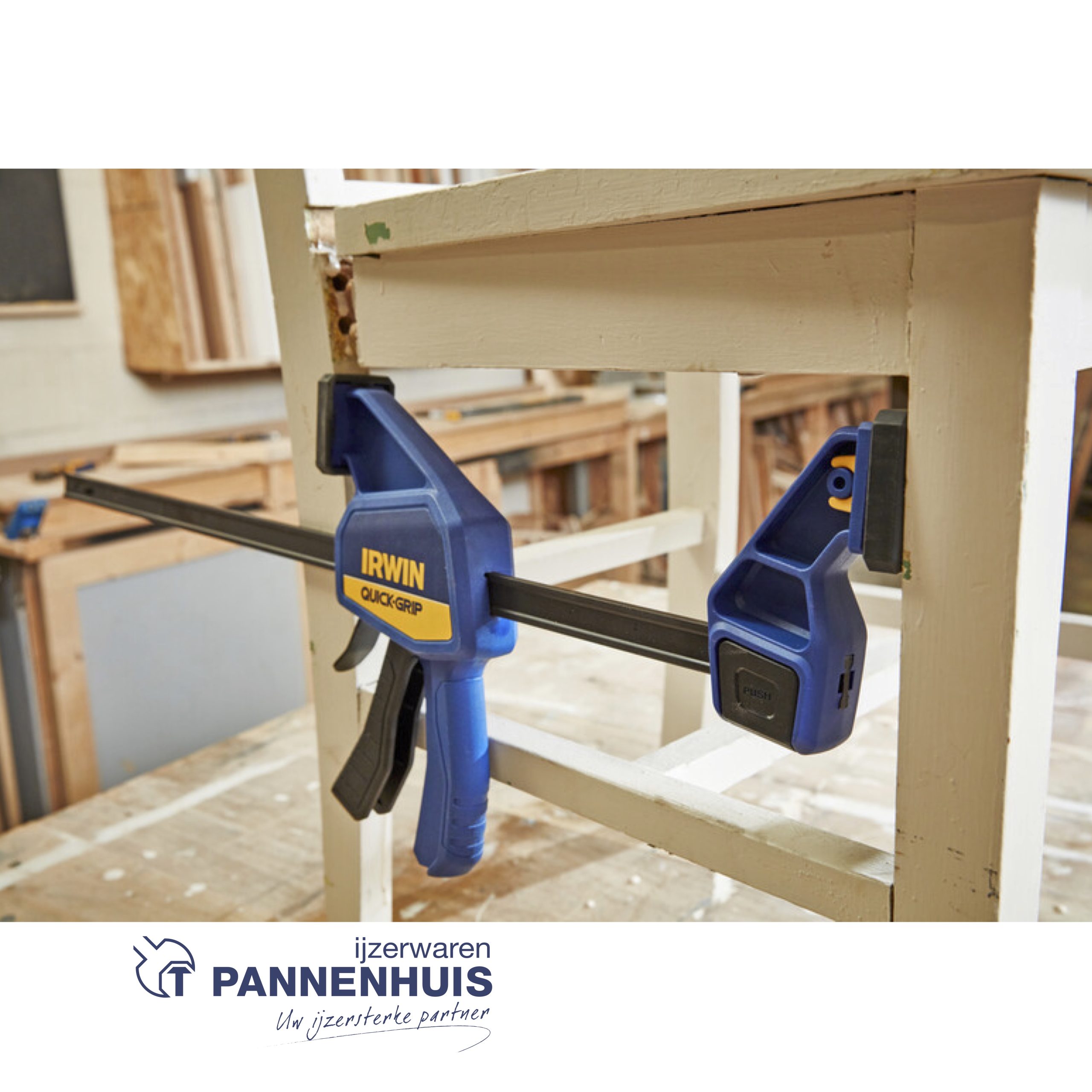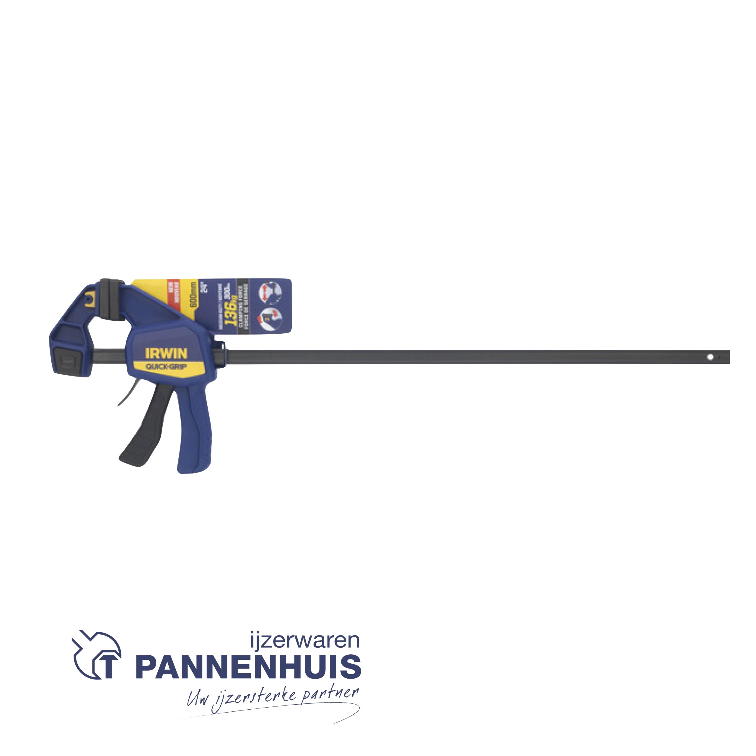 De IRWIN® QUICK-GRIP® middelzware staafklem met een hand verdeelt gelijkmatig tot 136kg (300 lbs) aanhoudende klemkracht. Ideaal voor tijdelijke vasthoud-, snelklemtoepassingen