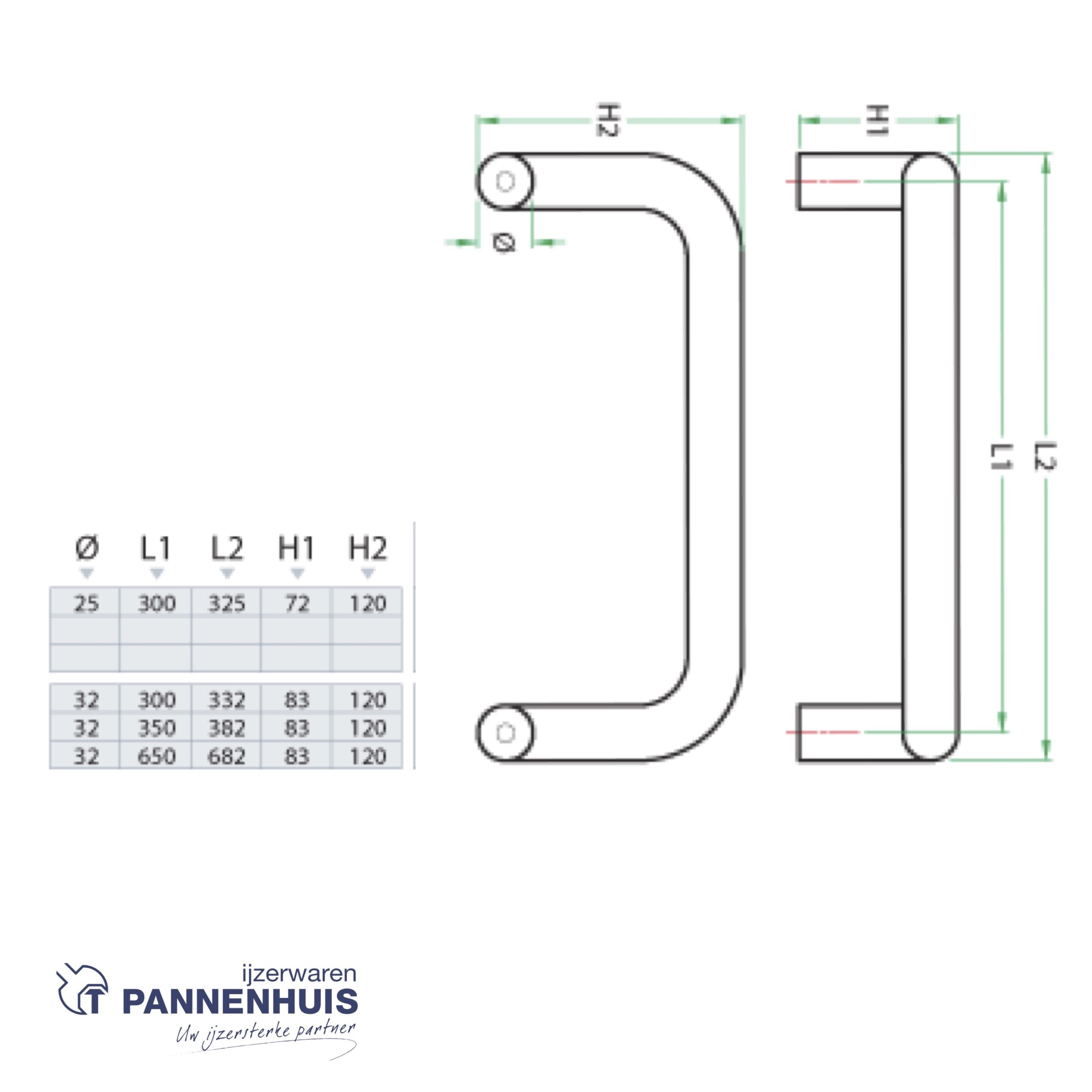 IVANA NECOSTEEL D-GREEP DIA 25/AS300MM/ENKEL