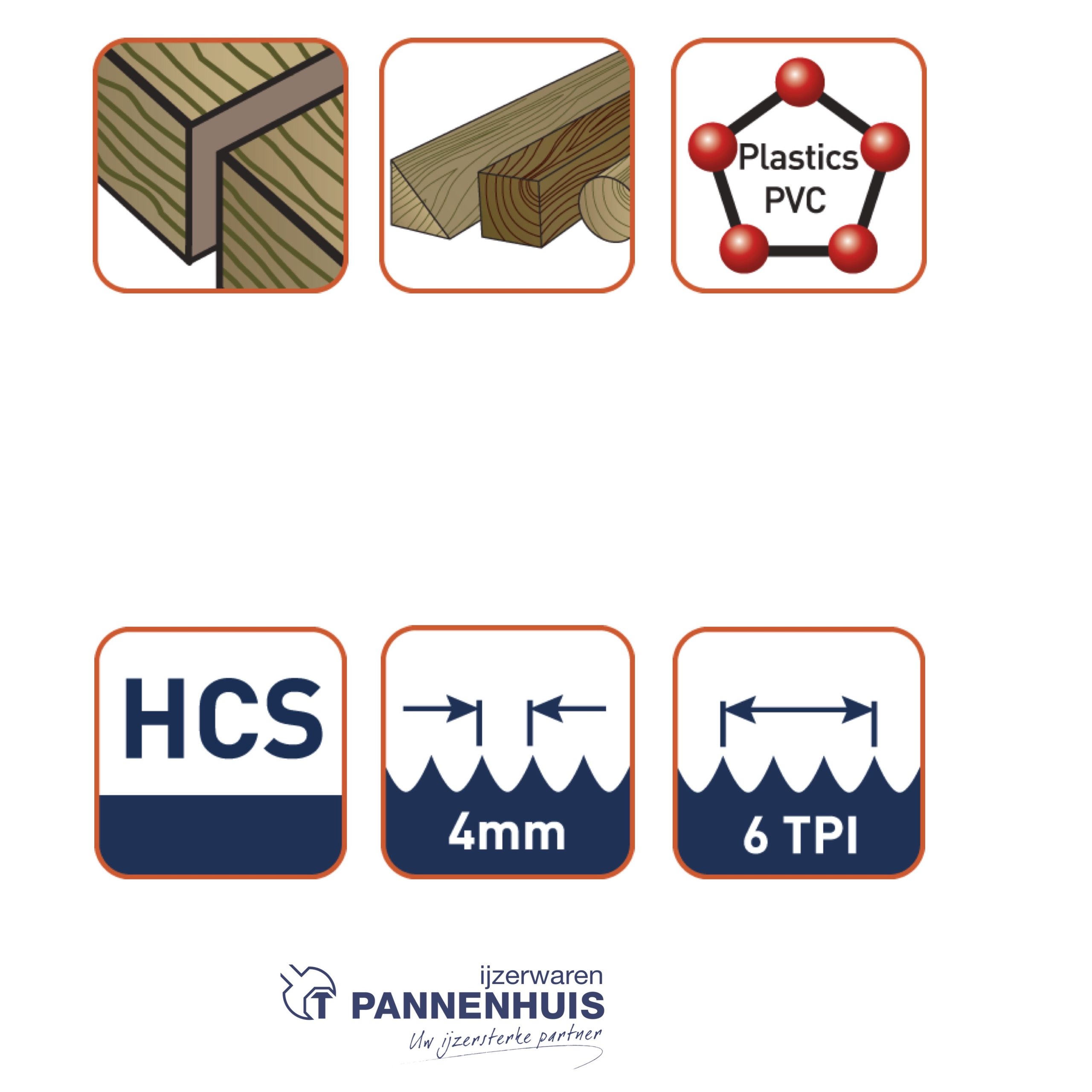 toepassing : zacht hout/platen, dik bouwhout, sandwichmateriaal. uitvoering:HCS, extra lang zaagblad.