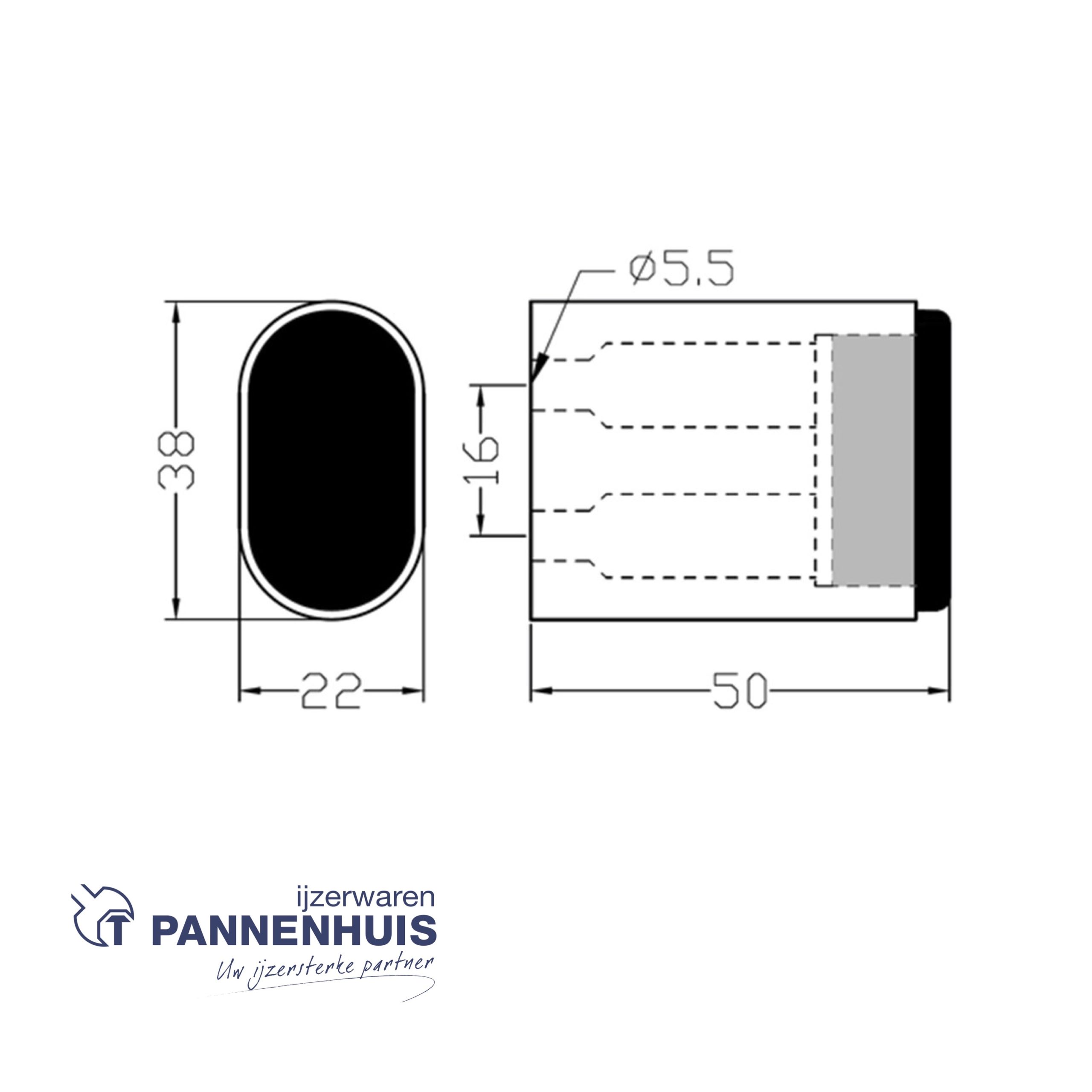 Deurbuffer van aluminium profiel met buffer van zwart kunststof (uit de serie 4700 t/m 4704):