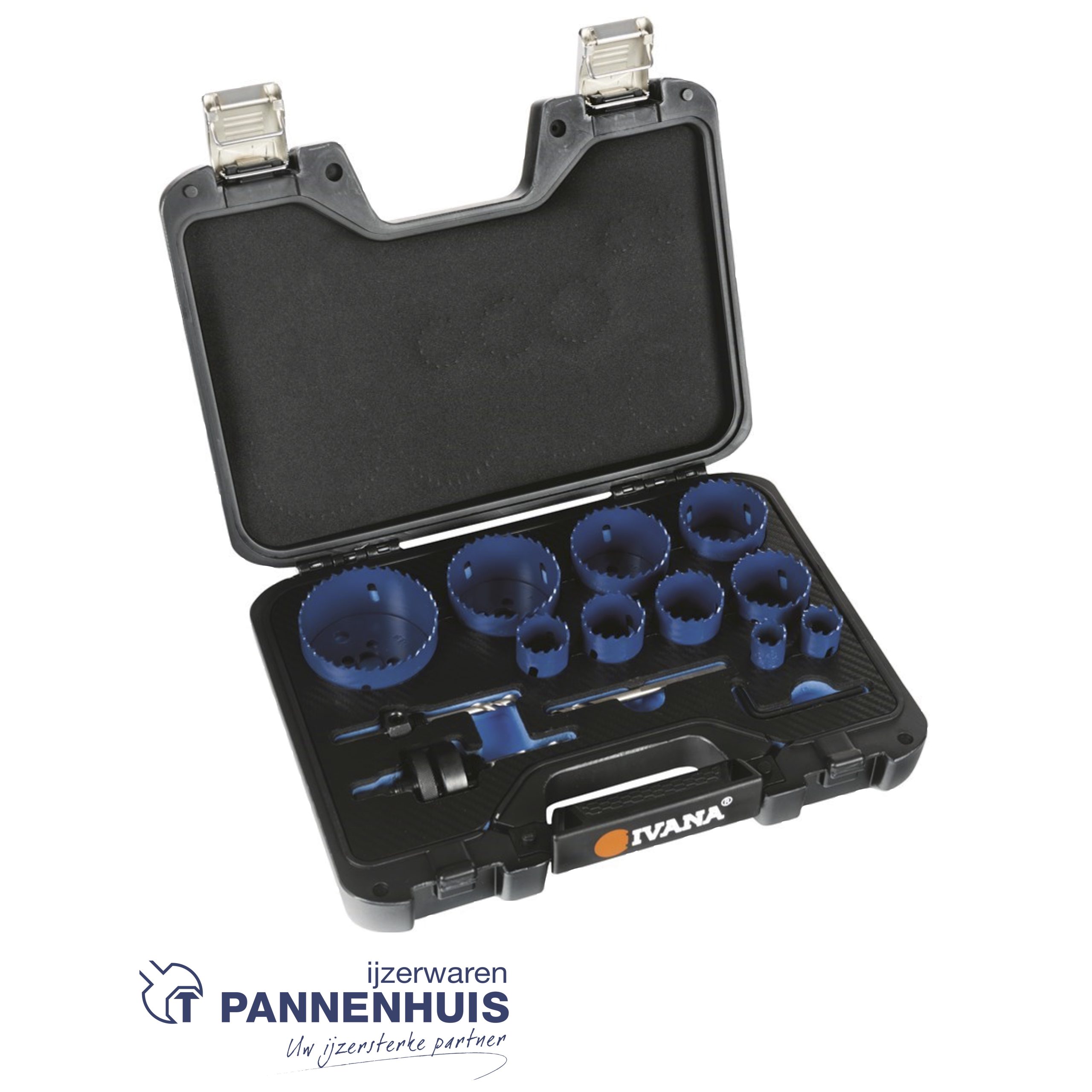 IVANA GATZAAGSET BIMETAAL 14 DELIG IN KOFFER, 19,22,29,35,38,44,51,57,64,76,2X HOUDER,CENTREERBOOR
