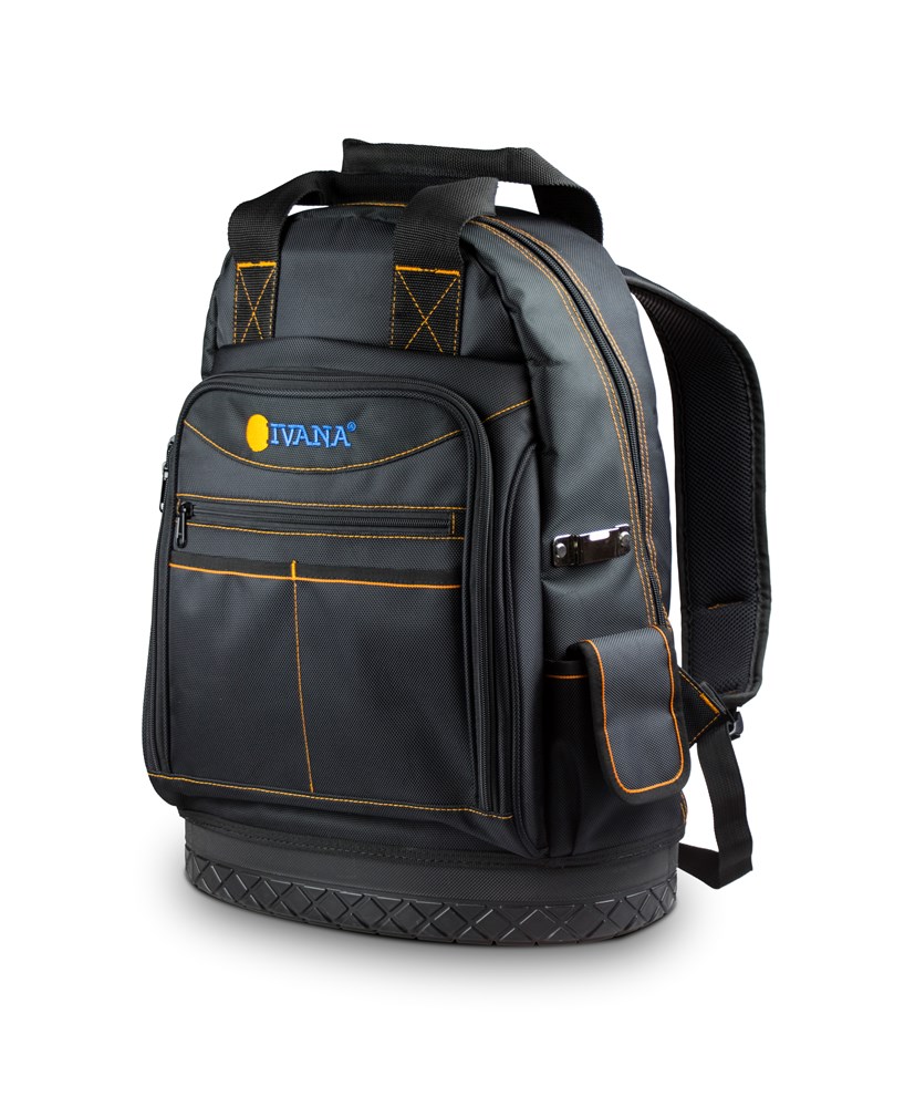 De gereedschapsrugtas heeft een groot hoofdvak en meerdere kleinere vakken. De onderkant is uitgevoerd in rubber voor extra stevigheid. De draagbanden zijn opgevuld en verstelbaar, dit zorgt ervoor dat hij met een zware lading comfortabel te dragen is.
