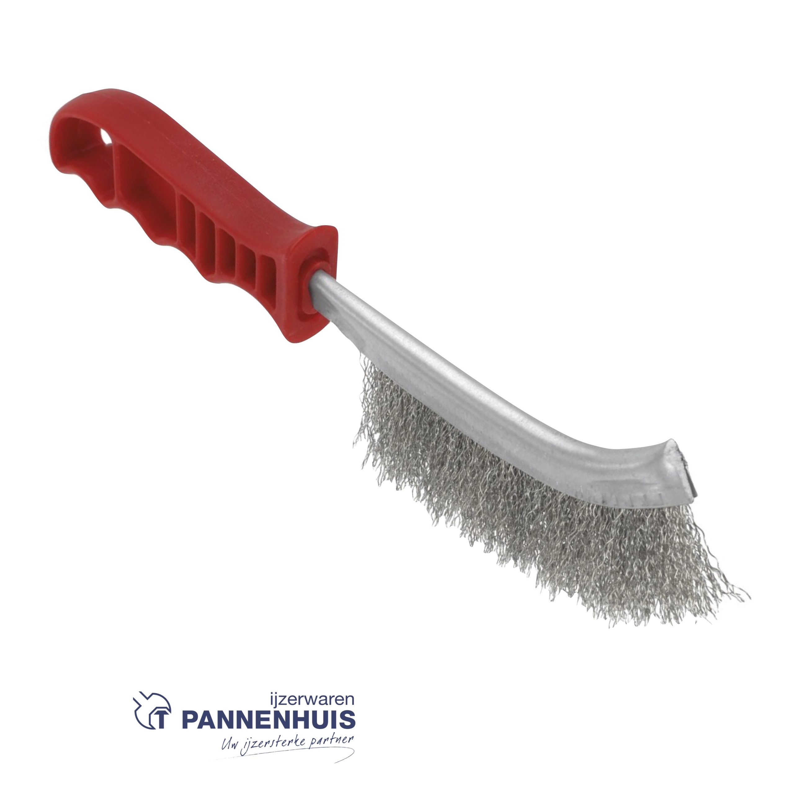 Kunststof handgreep met 1 rijige borstel voorzien van gehard, kwaliteits staaldraad.