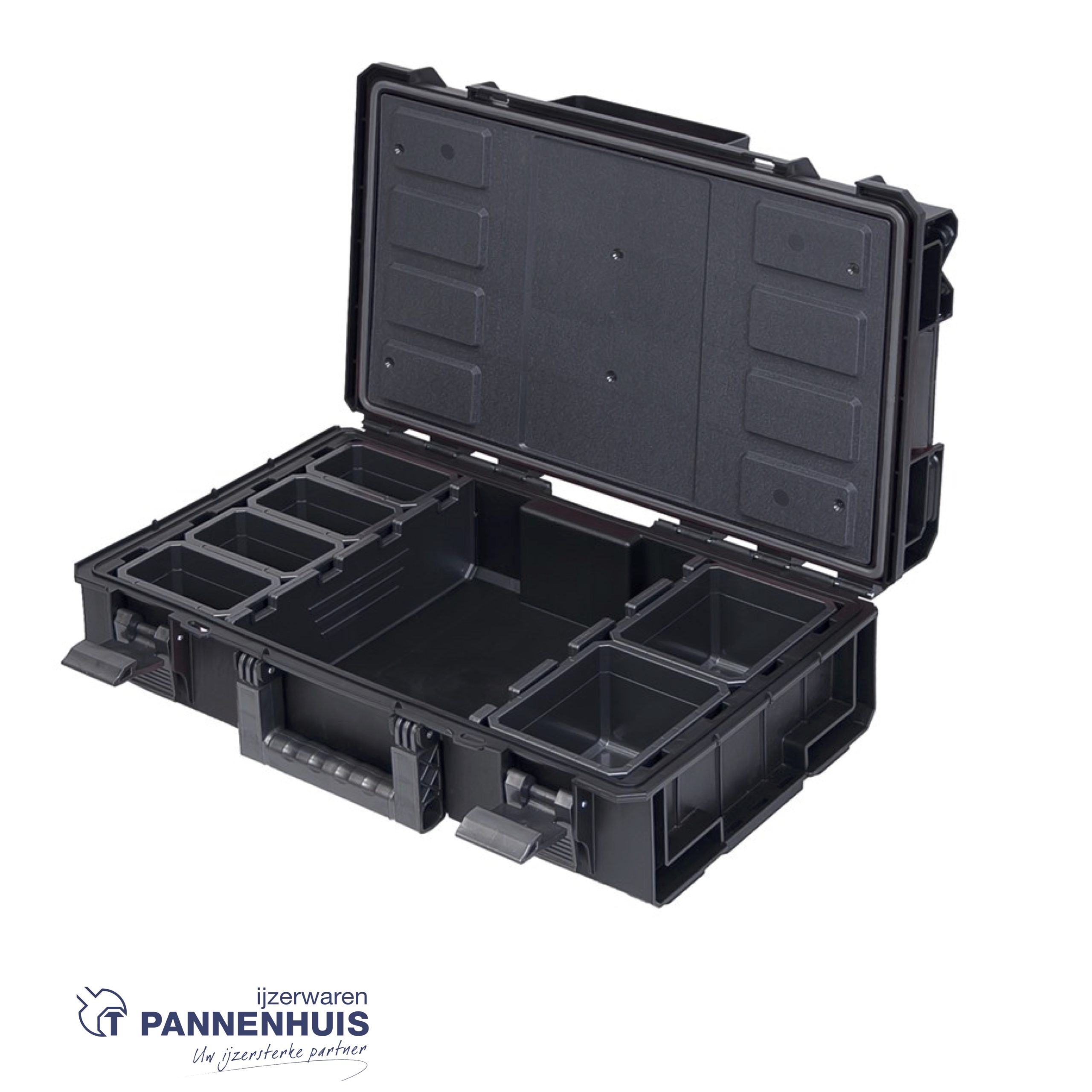 De 200 pro is onderdeel van het modulaire koffersysteem 1. Een sterke koffer van 15,5 liter, kan tot wel 120 KG dragen, voor maximaal 50 KG aan inhoud. Stof- en waterdicht met sterke hefboomsluiting. Inclusief uitneembare opbergbakjes, en voorzien van extra opbergruimte in de deksel.