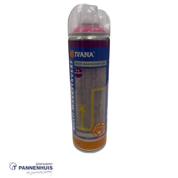 Ivana Multi Markeerverf 360° is een zeer goed zichtbare markeringsverf. Levensduur van ca. 8-12 maanden (afhankelijk van laagdikte en belasting) hoog dekkend vermogen, goed zichtbaar en weersbestendig. Multifunctioneel toepasbaar in de bouw.