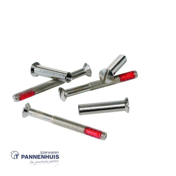 Messing vernikkeld huls, staal vernikkeld boutje.