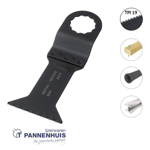 Breed toepassingsgebied door Bi-Metalen vertanding. Zaagt hout, kunststoffen, spijkers, koper- en aluminiumbuizen en profielen.
