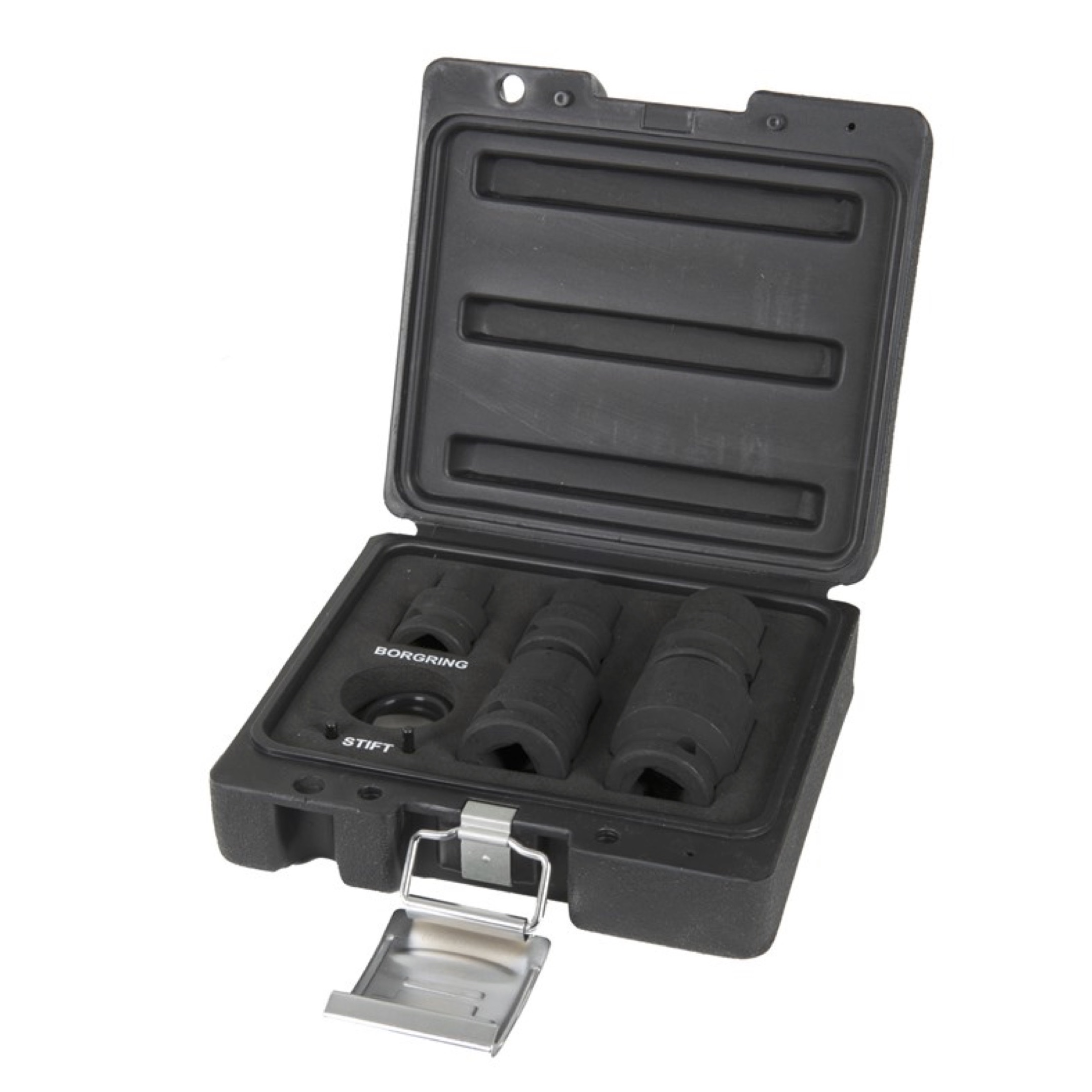 inhoud : 5 doppen (10, 13, 17, 19 en 24 mm), 2 borgringen en 2 stiften materiaal : chroom molybdenum