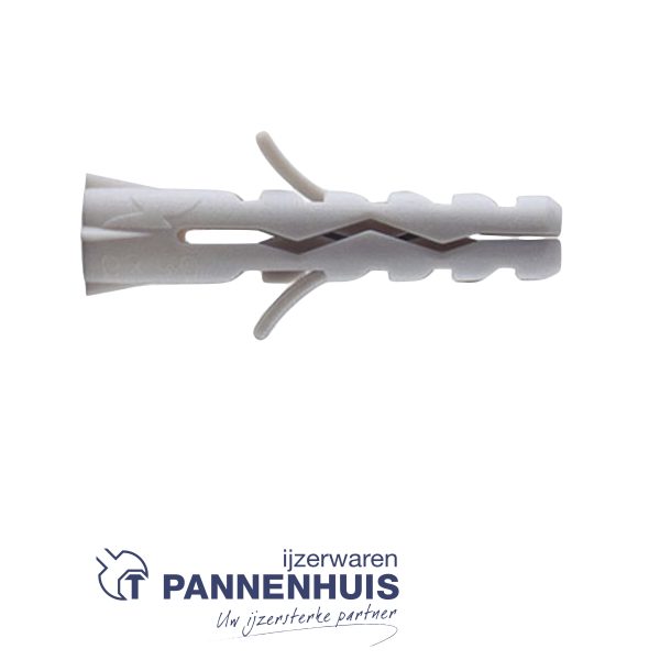 Nylon spreidplug geschikt voor hout- en spaanplaatschroeven. Vleugels weerhouden de plug tegen meedraaien in het boorgat. Nagenoeg spreiddrukvrije kraag voorkomt beschadiging van tegel en pleisterwerk.