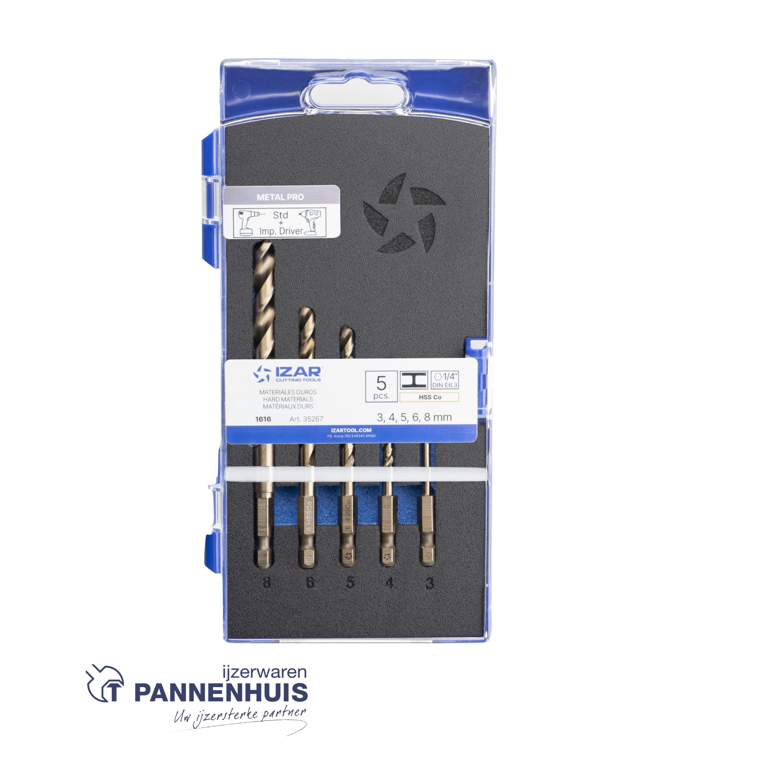 Izar Cobalt boren set 3-4-5-6-8 mm zeskant 1/4 type 1616