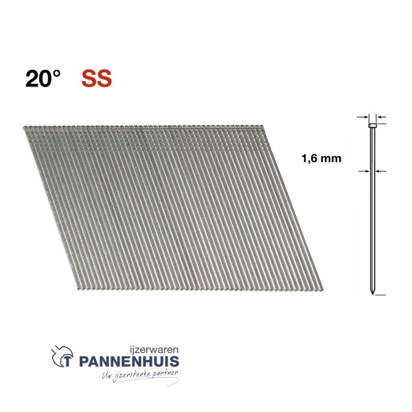 K201281 FNP – 25 2000st INOX Schuine 20° brads 16Ga RVS [DNBA16]